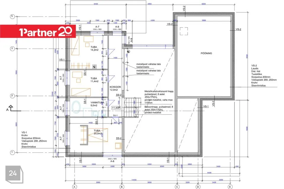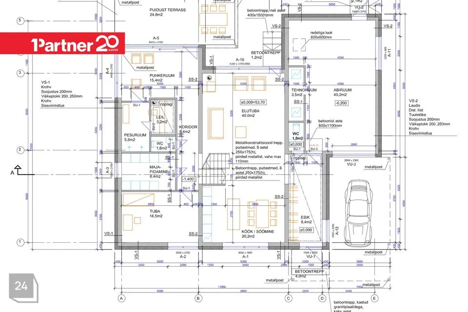avar elutuba (40 m²) avatud köögiga (20 m²)