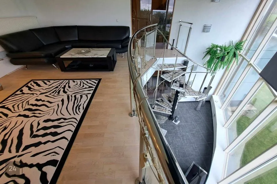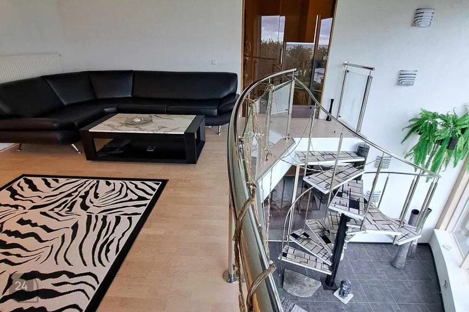 2. korrus: kaks magamistuba (üks garderoobiga), vannituba, trepihall, puhkeruum ja ringterrass.