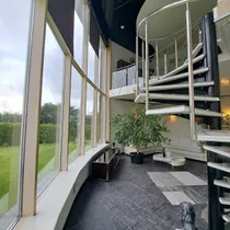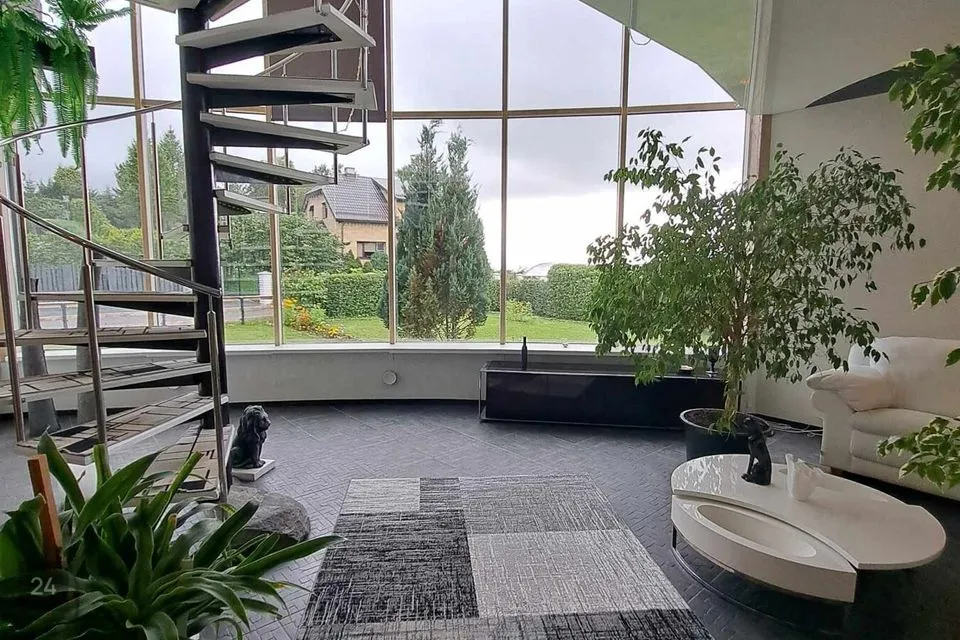 1. korrus: avar elutuba, söögituba ja köök, saun koos puhkeruumiga, pesuruum, fuajee, garaaž-töökoda, talveaed.