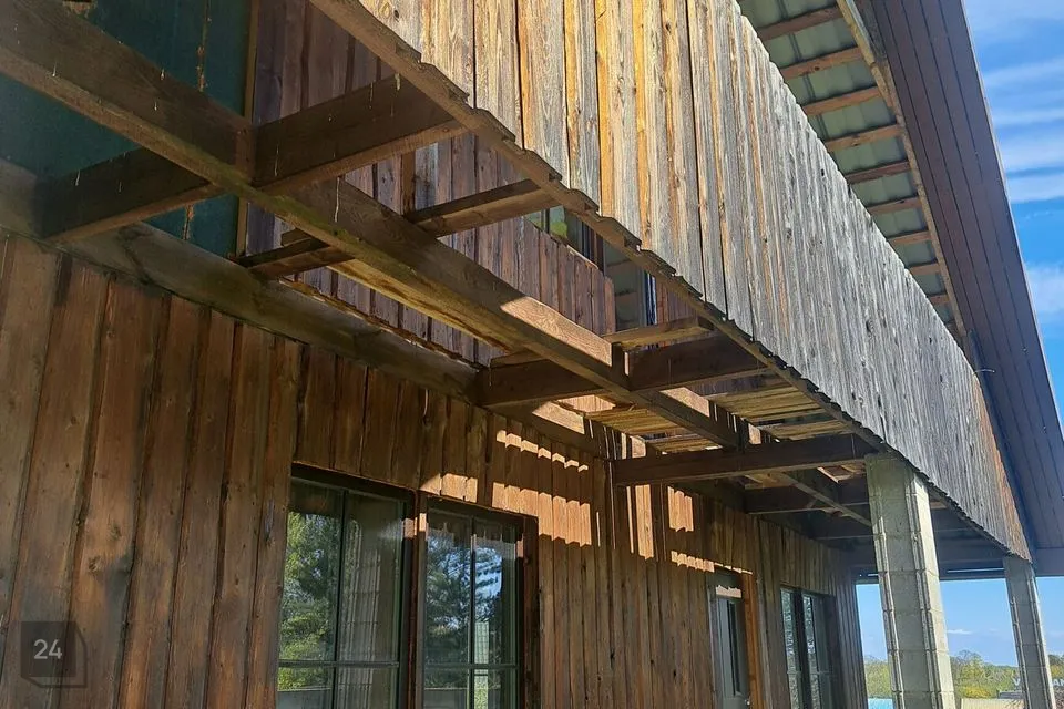 Puitmaja, pakettaknad, turvauks, plekk-katus.