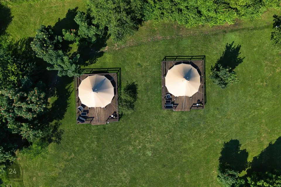 * 2 glämping-telkmaja terrassidega – mõeldud kasutamiseks suveperioodidel