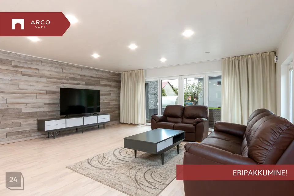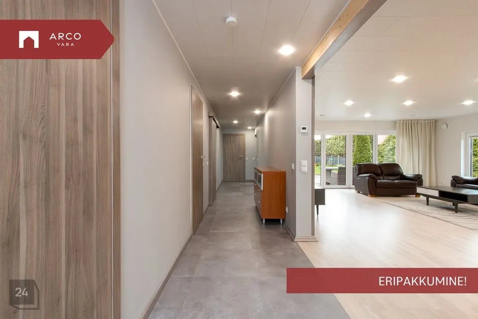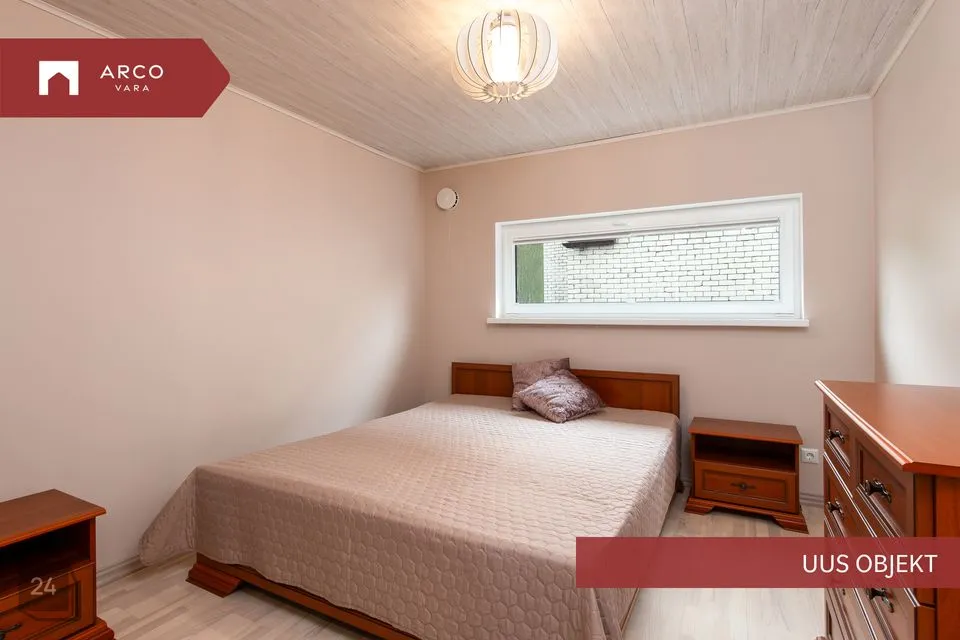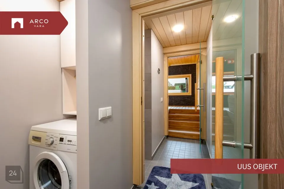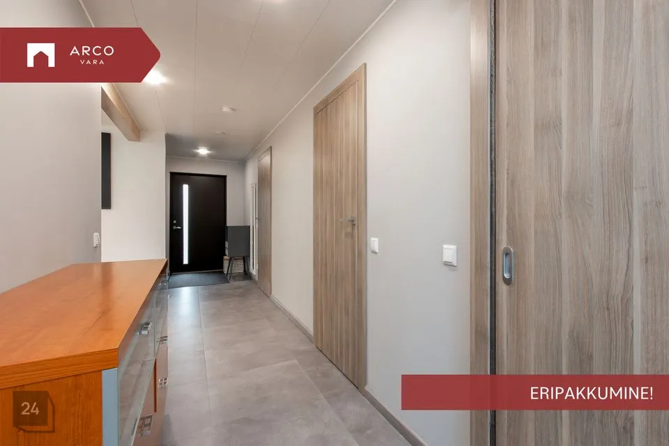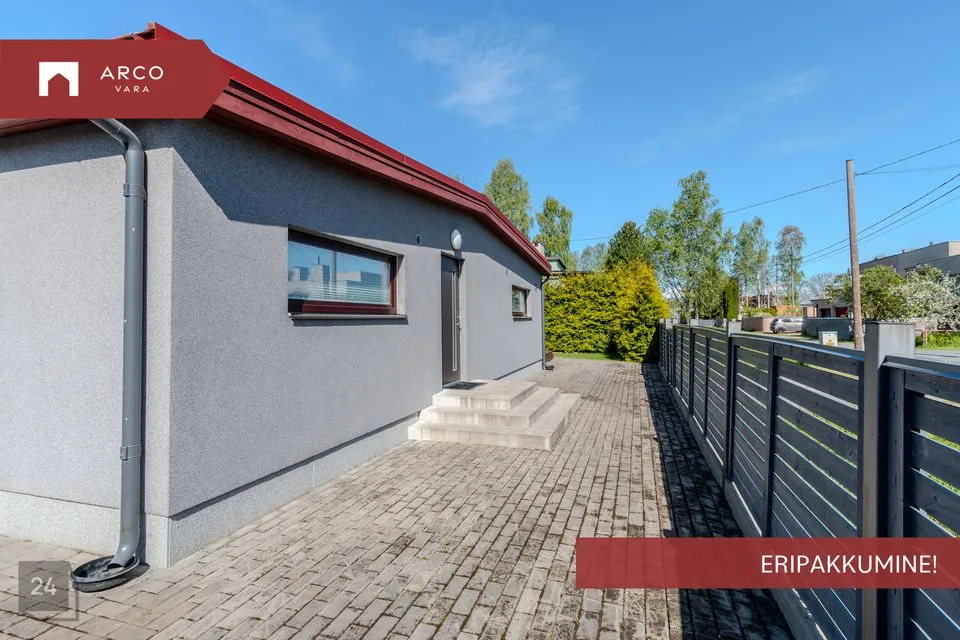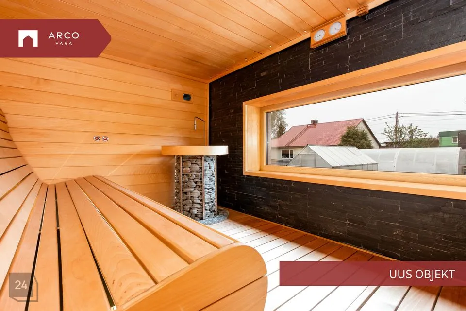 Optimaalse suurusega maja pakub läbimõeldud planeeringut, kus kodu südameks köök-elutuba, mida omakorda on võimalik avardada terrassi suunal. Magamistoad asetsevad pisut eraldatuna koridorsüsteemil ning saunablokk on siin üksikelamus sõna otseses mõttes omaette klass. Juhime tähelepanu, et kogu vajaliku tehnikaga supersuur köök on juba paigaldatud ja esikus mahukas garderoobkapp. Saunabloki vesiklosett-bidee ja bideedušš paiknevad eraldi kahe dušiga pesuruumist, eesruum sobilik riietumiseks, samuti olemas oma koht pesumasinale ja saunamõnusid nautides saad vaid nupule vajutades täita ruumi oma lemmik aroomiga ning taustaks panna mängima oma lemmik hitid või raadiosaate. Kodusooja annab õhk-vesi-soojuspumba baasil põrandasisene küttetorustik, märgades ruumides sundventilatsioon, lisaks värskeõhuklapid. Elektriliitumine 3faasi 25amprit. Terrassile paistab päike terve päeva, kui kipub väga kuumaks minema saab kasutada avatavat markiisi. Või kui ilmad juba jahedamad, on aeg tünnisaunas mõnulemiseks. Õueala on hoolikalt hooldatud, maja esine unikiviga kaetud ning sisehoov murustatud. Kinnisasja piirab kolmelt küljelt piirdeaed/hekk, vaid ühele küljele oleks veel vajalik piire rajada. Kui majas sees on kõik oluline olemas, siis ka õuealal ei ole vaja millegi pärast muretseda, koli sisse ja hakka kohe elu nautima, isegi perenaisele on kasvuhoone ning peenrad juba valmis.