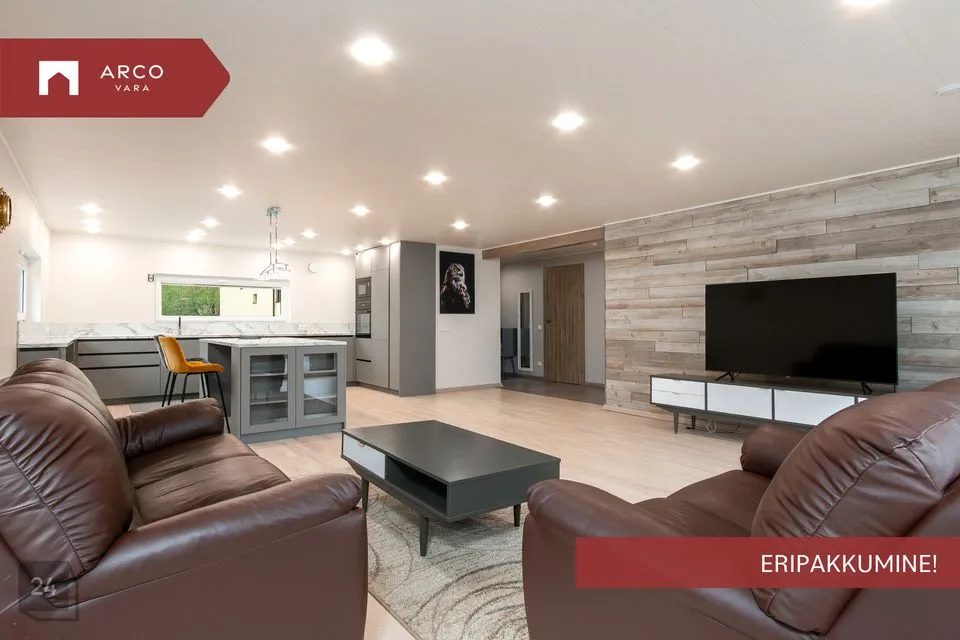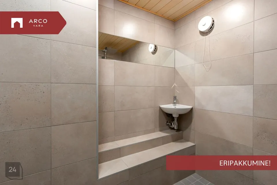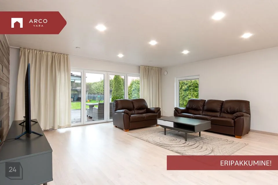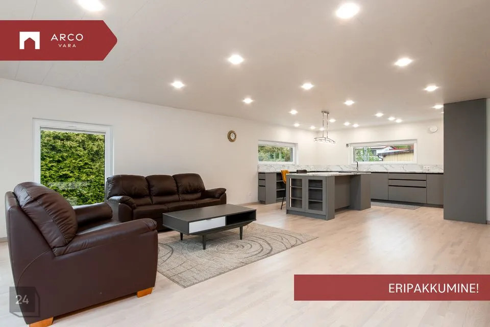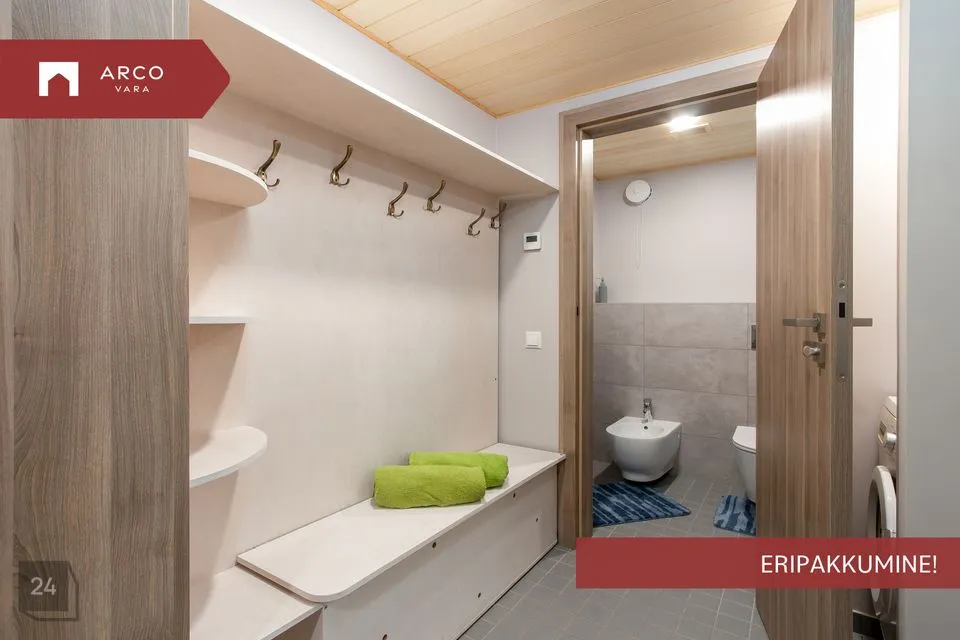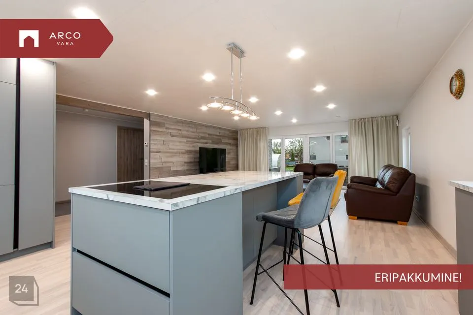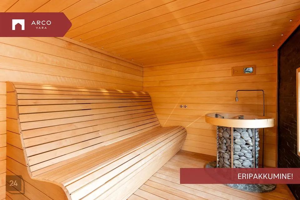 Optimaalse suurusega maja pakub läbimõeldud planeeringut, kus kodu südameks köök-elutuba, mida omakorda on võimalik avardada terrassi suunal. Magamistoad asetsevad pisut eraldatuna koridorsüsteemil ning saunablokk on siin üksikelamus sõna otseses mõttes omaette klass. Juhime tähelepanu, et kogu vajaliku tehnikaga supersuur köök on juba paigaldatud ja esikus mahukas garderoobkapp. Saunabloki vesiklosett-bidee ja bideedušš paiknevad eraldi kahe dušiga pesuruumist, eesruum sobilik riietumiseks, samuti olemas oma koht pesumasinale ja saunamõnusid nautides saad vaid nupule vajutades täita ruumi oma lemmik aroomiga ning taustaks panna mängima oma lemmik hitid või raadiosaate. Kodusooja annab õhk-vesi-soojuspumba baasil põrandasisene küttetorustik, märgades ruumides sundventilatsioon, lisaks värskeõhuklapid. Elektriliitumine 3faasi 25amprit. Terrassile paistab päike terve päeva, kui kipub väga kuumaks minema saab kasutada avatavat markiisi. Või kui ilmad juba jahedamad, on aeg tünnisaunas mõnulemiseks. Õueala on hoolikalt hooldatud, maja esine unikiviga kaetud ning sisehoov murustatud. Kinnisasja piirab kolmelt küljelt piirdeaed/hekk, vaid ühele küljele oleks veel vajalik piire rajada. Kui majas sees on kõik oluline olemas, siis ka õuealal ei ole vaja millegi pärast muretseda, koli sisse ja hakka kohe elu nautima, isegi perenaisele on kasvuhoone ning peenrad juba valmis.