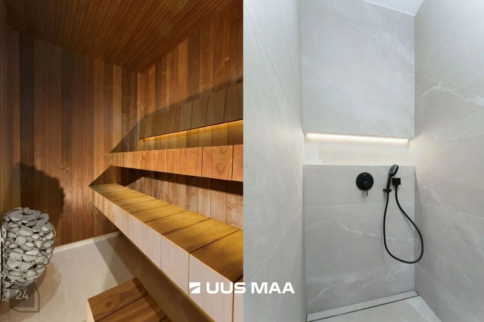1. Kaasaegne disain, kõrged laed 3,25 m ( LED valgustus ), avarad eluruumid ja garaaž.