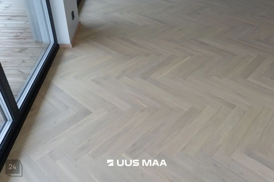 Põrandad - liimitud tamme kalasba parkett ( Pure Natura ), põranda tooni liistud.