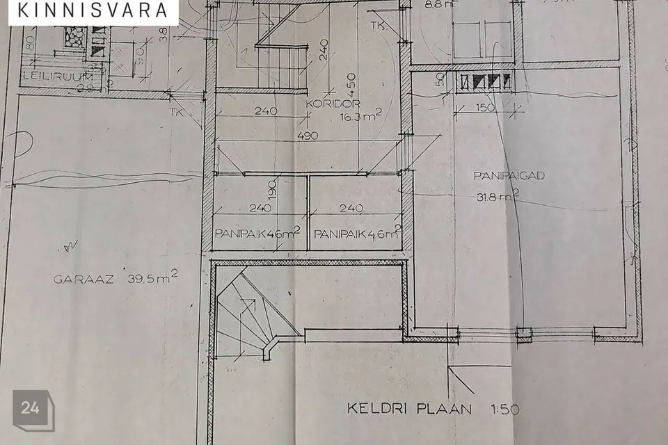 0 korrus: suur tuba, katlaruum, garaaž