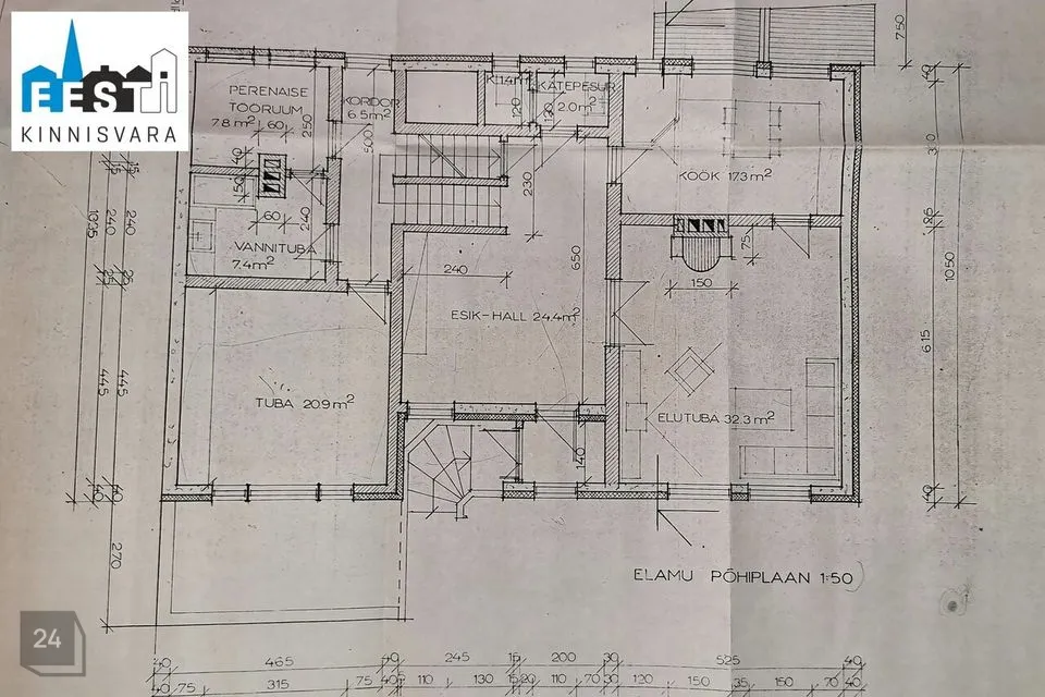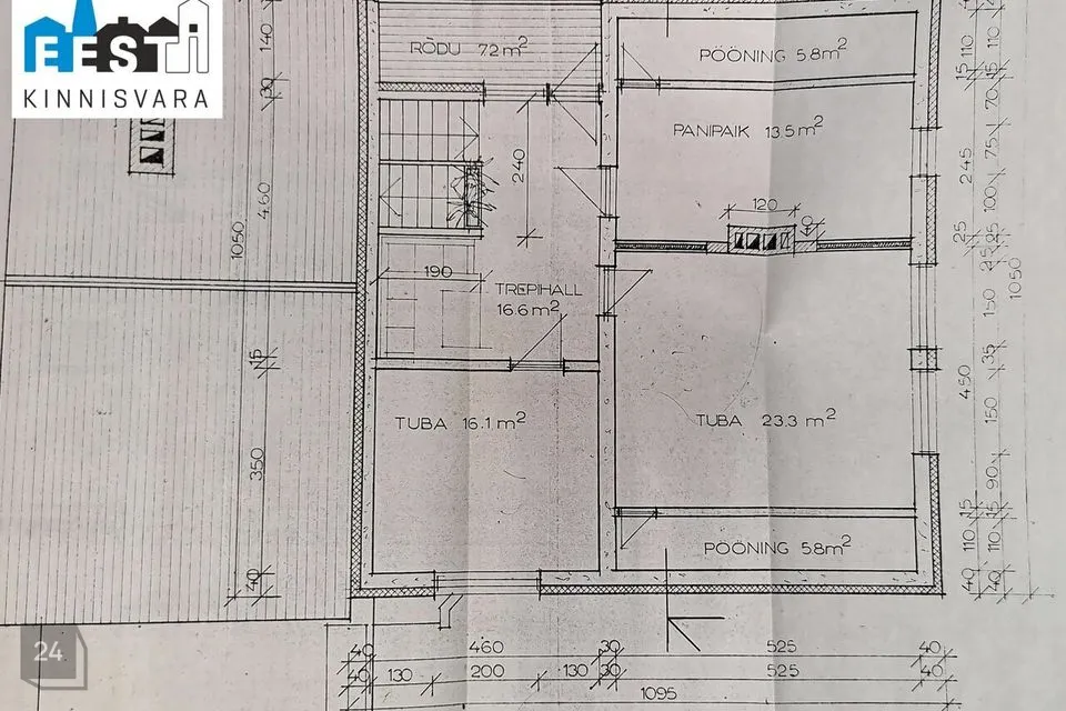 1 korrus: esik, köök, sahver, elutuba, rõdu