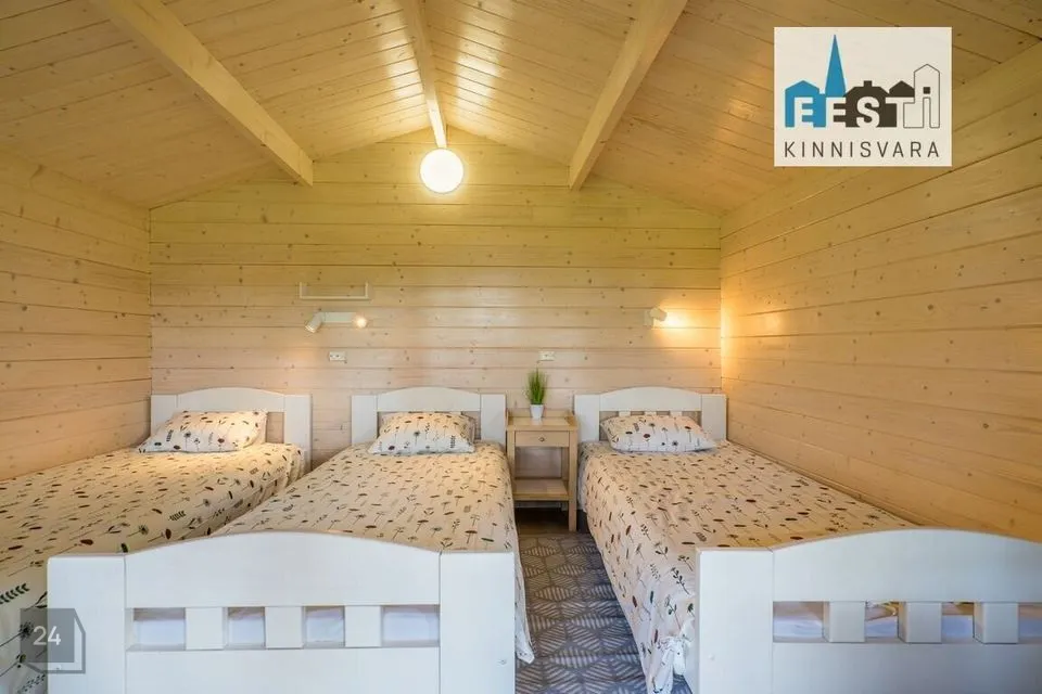 Müüa pikaajaliselt tegutsev majutusasutus, mis asub Pärnu külje all, maalilse jõe kaldal, Pärnu kesklinnast 6 km kaugusel. Krundi suurus on muljetavaldavad 23 643 ha ning kogu vallas- ja kinnisvara kuulub müügihinna hulka. Kinnistul asub 22 kämpingut, 4 administratiiv hoonet, kahe korruseline peamaja saunaga, laohoone, eraldi saunamaja, kõrghaljastus. Krunt piirneb Nurme maanteega, Pärnu jõega, 7000m2 metsa ja ojaga ning Sauga kooli jalgpalli väljakuga.