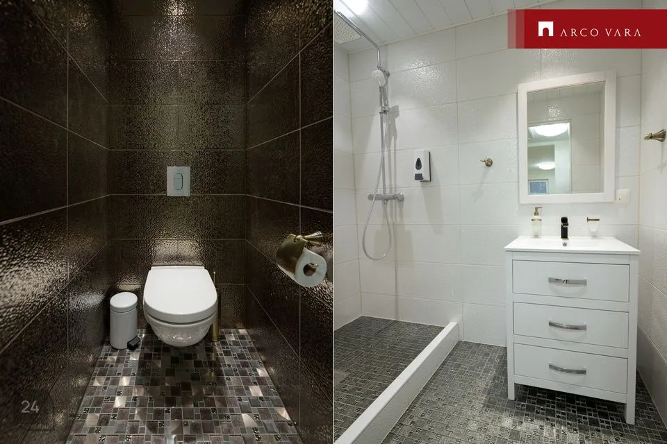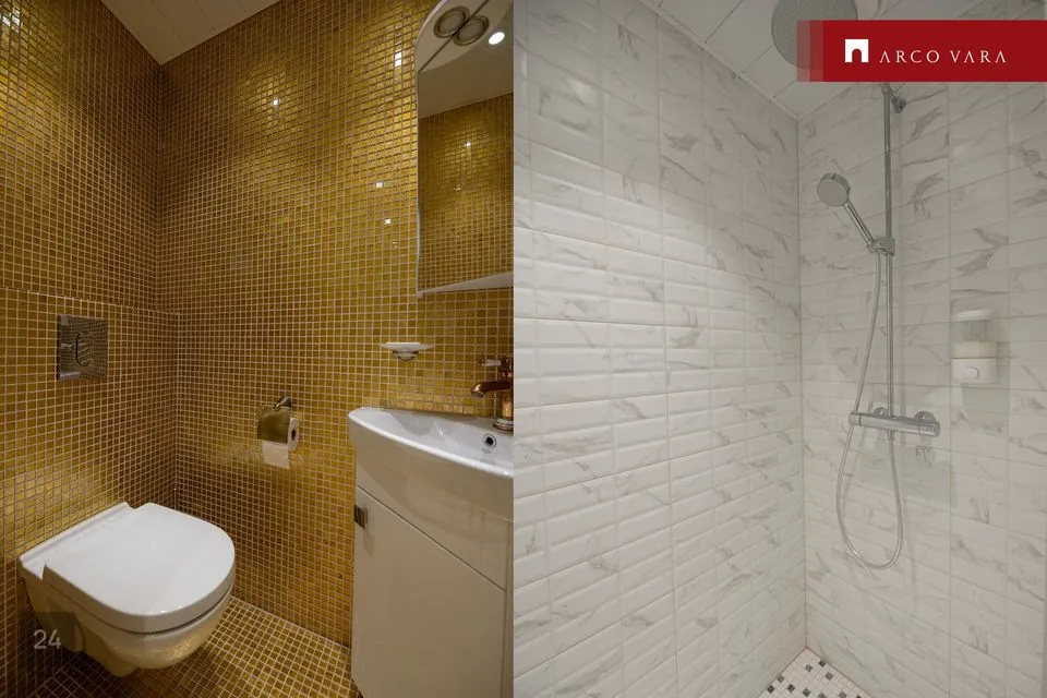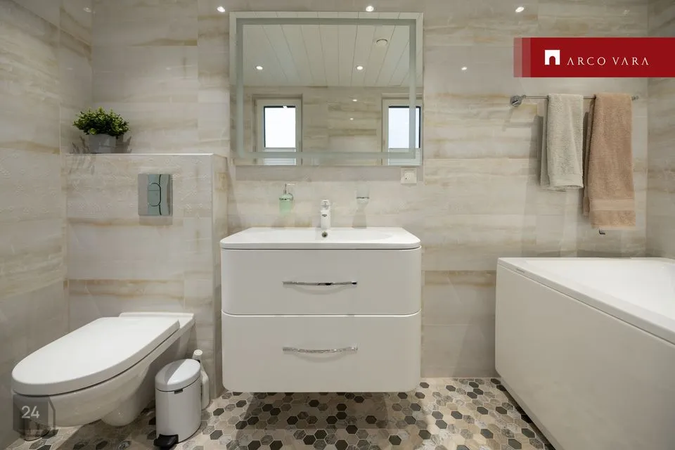Kaks pesemisvõimalust - avar vannituba loomuliku valgusega (kaks akent), koos suure vanni- ja wc nurgaga.