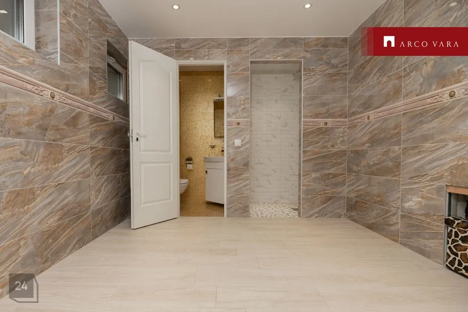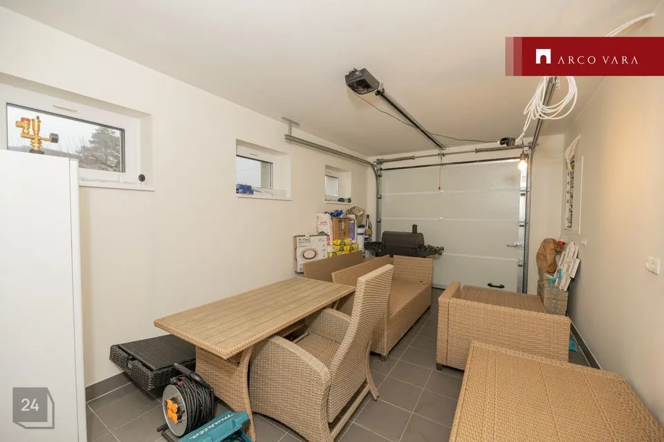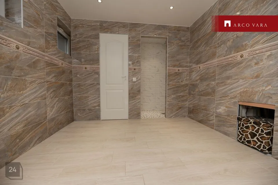 Avar esik, kust pääseb ühelt poolt otse terrassile ja tagaaeda ning teiselt poolt sauna (lõpetamata) , sauna eesruumi, eraldi duširuumi, eraldi WC-sse ja garaaži.