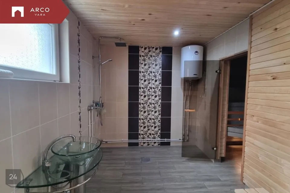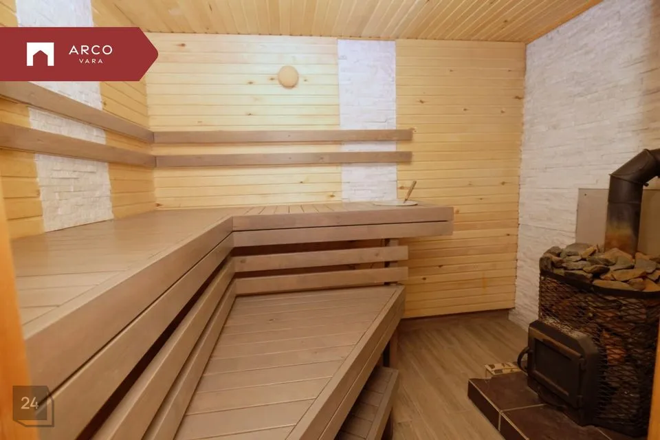 Saunamaja ehitatud 2015. aastal väikeplokkidest, on heas seisukorras ja koosneb avarast eesruumist, pesuruumist ja leiliruumist. Olemas on ühendus vee ja kanalisatsiooniga.