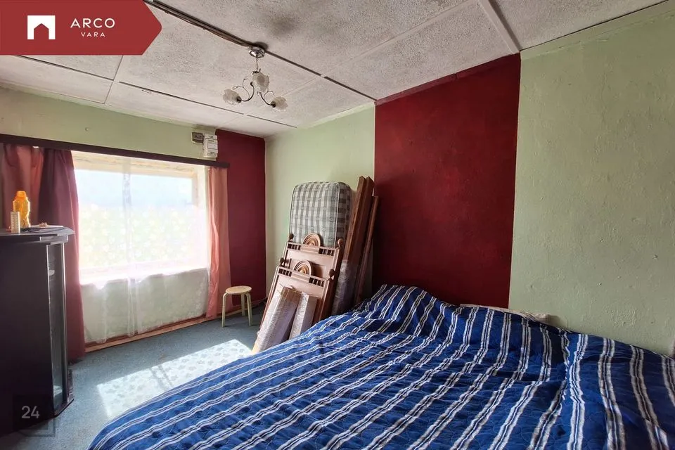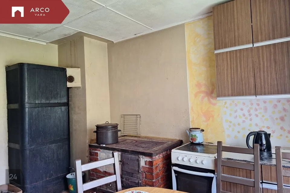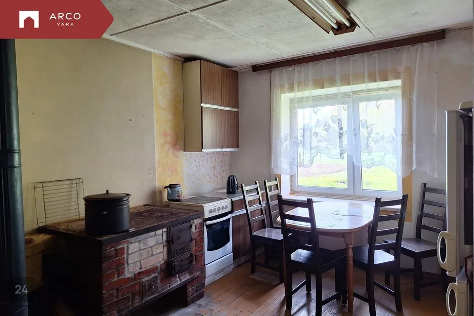 On the first floor of the house there are three rooms, a kitchen of 15.7m2, a storage room/pantry, a cellar.