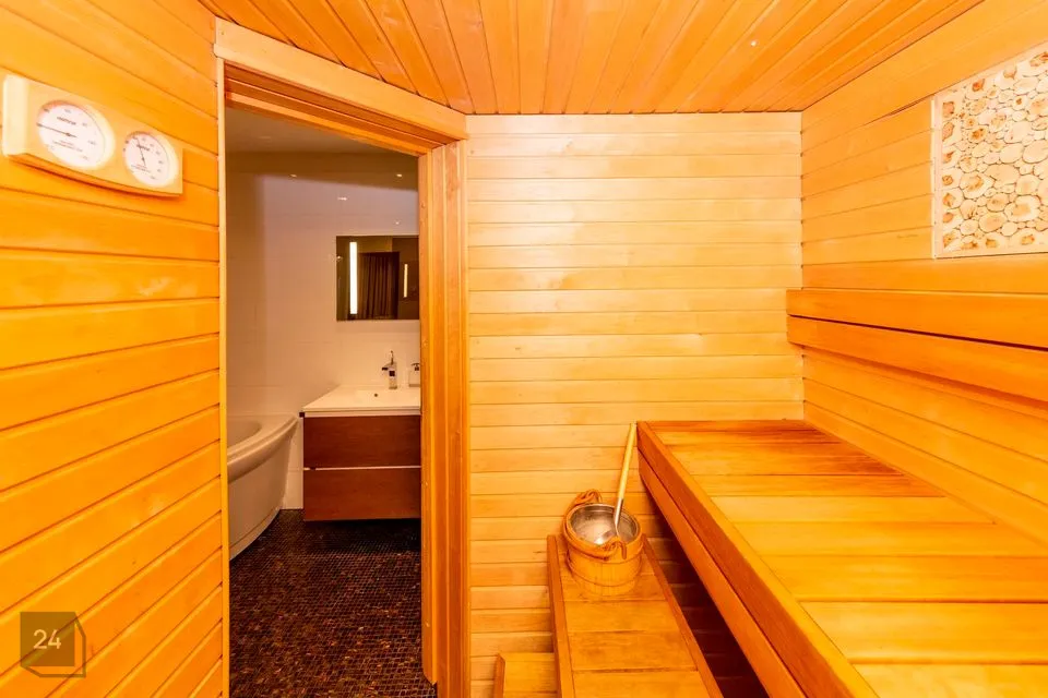 Esimesel korrusel asuvad esik, avatud köögiga elutuba 54,4 m², saun eesruumiga 15,1 m², WC, garaaž ühele autole, katlaruum ja terrass koos talveaiaga.