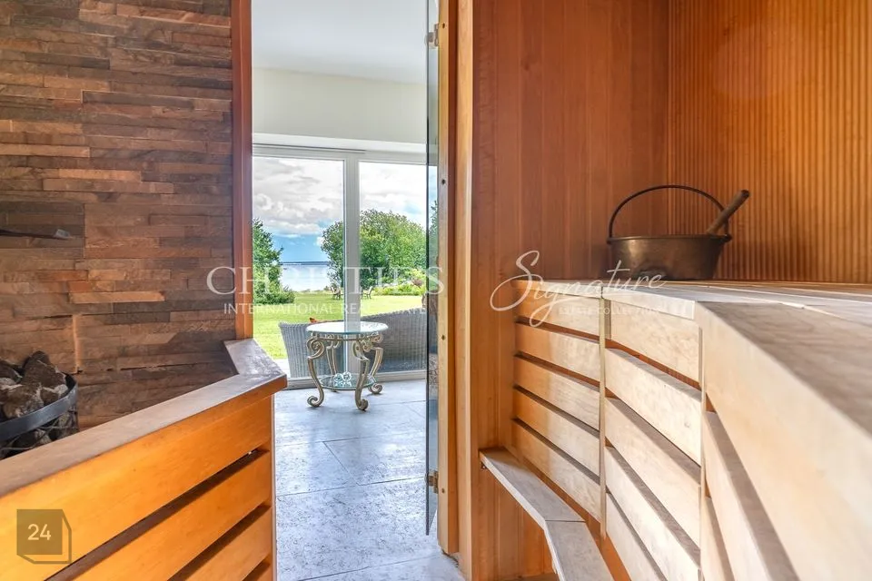 Maja alumisel, 0 korrusel, asub koduspaa - mullivann, saun, sauna eesruum/puhkeruum. Spaas on maast laeni aknad, kust avaneb imeline merevaade. Sauna eesruumist avaneb juurdepääs suurele terrassile.