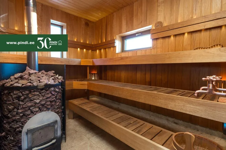 Kinnistul asub ka 42m2 suurune SPA-maja kahe erineva saunaga: puuküttega leilisaun ja aurusaun. Lisaks pesuruum, riietusruum, avar bassein ning eraldi puhkeruum integreeritud täisköögiga.