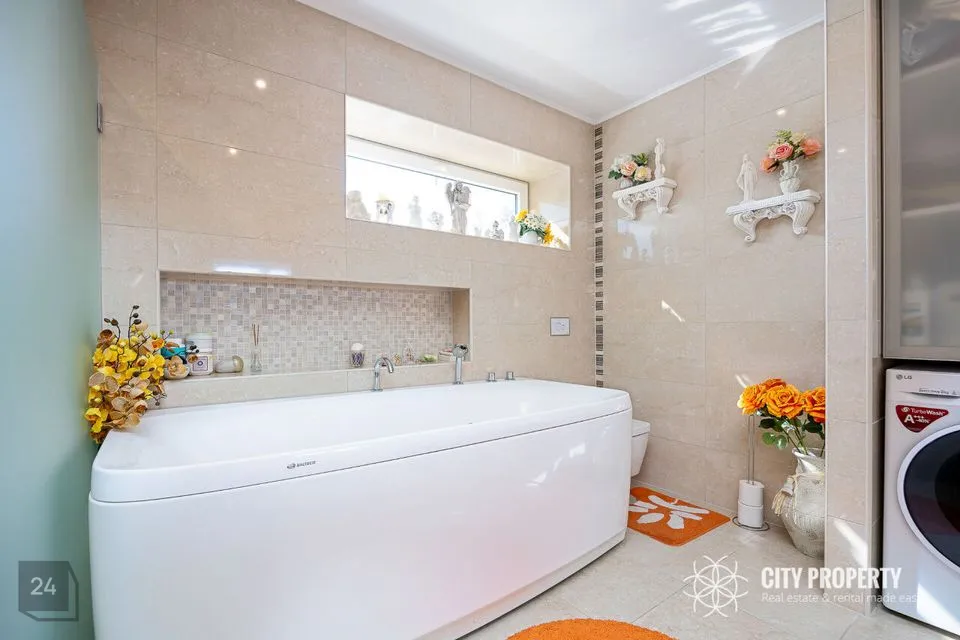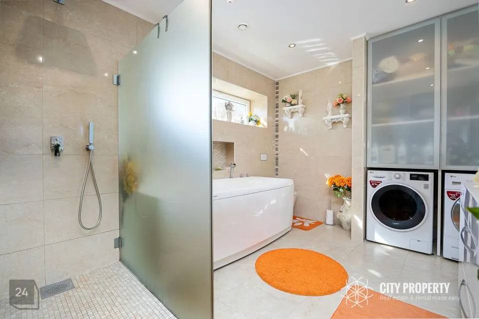 - Vannituba koos dušširuumiga – ruumikas aknaga vannituba, kus on olemas vann kui ka dušš; paigaldatud pesumas ja kuivati