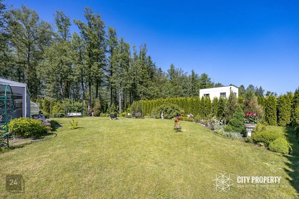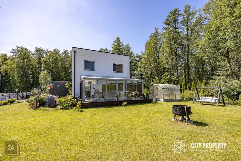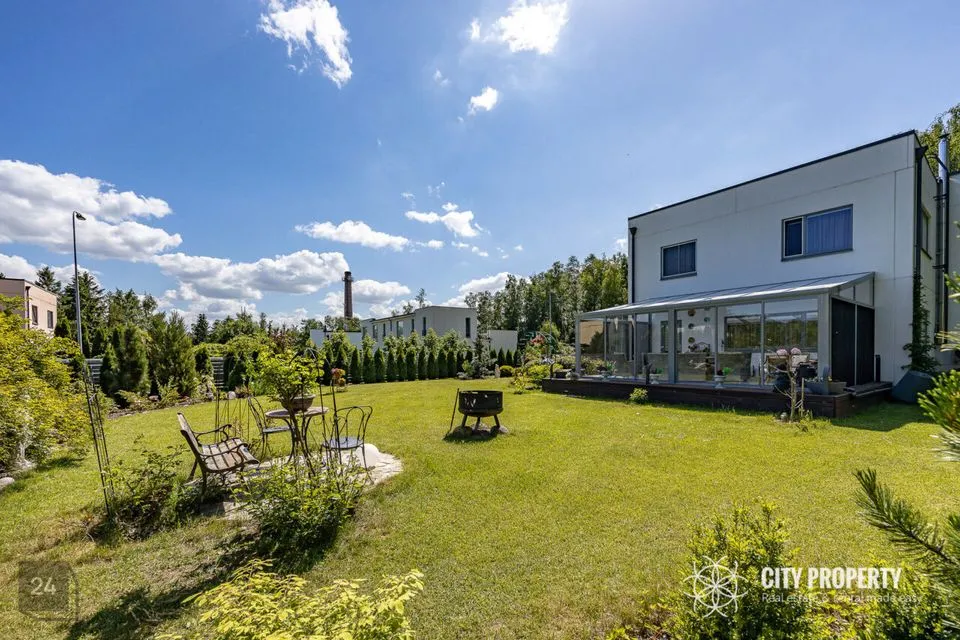 Maja juurde kuulub kaunilt haljastatud 1282 m2 krunt. Krundi planeerimisel on arvesse võetud päikese liikumist ning kasutatud võimalikult hooldusvabasid igihaljaid taimi, kus kasvab mitmeid viljapuid ja põõsaid. Hoovis on olemas ka kuur taimede kasvatamiseks.