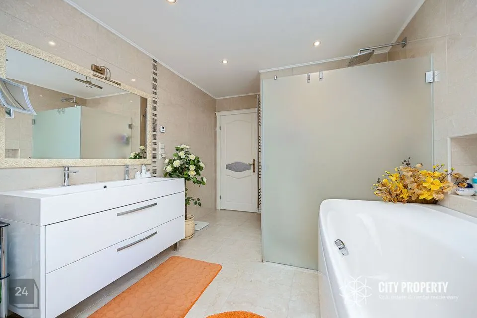 - Master-bedroom – suur ja avar magamistuba on maitsekalt viimistletud heledates toonides, mis tekitab meeldivat tunnet nii hommikul ärgates, kui ka õhtul. Olemas ruumikas sisseehitatud garderoobikapp, mis mahutab palju vajalikku