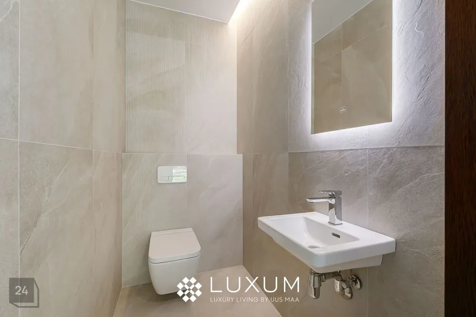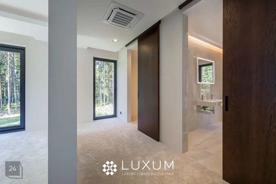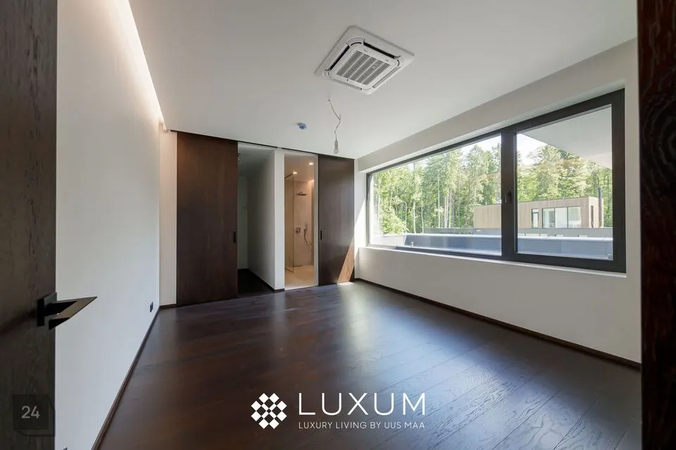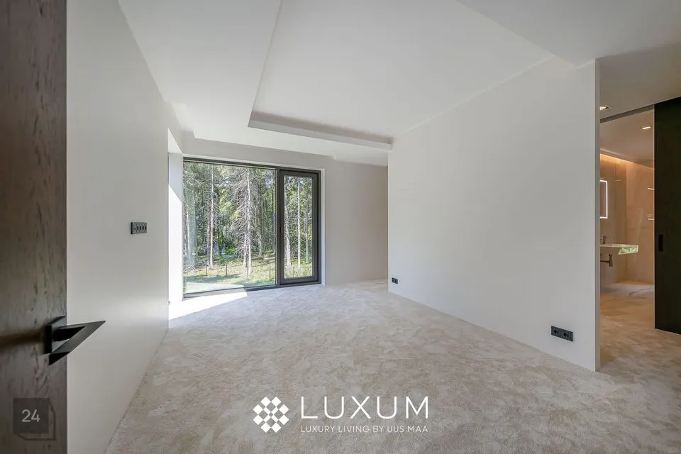 Tubade suurused koos garderoobi ja dusśiruumidega (26,1m²; 26,2m²; 23,7m²; 41,2m²;). Master bedroom on eriti avar maast laeni akendega, vaadetega metsale ning eraldi suure garderoobitoa ja luksusliku dusíruumiga. Santehnika kogu majas firmalt Villeroy Boch.