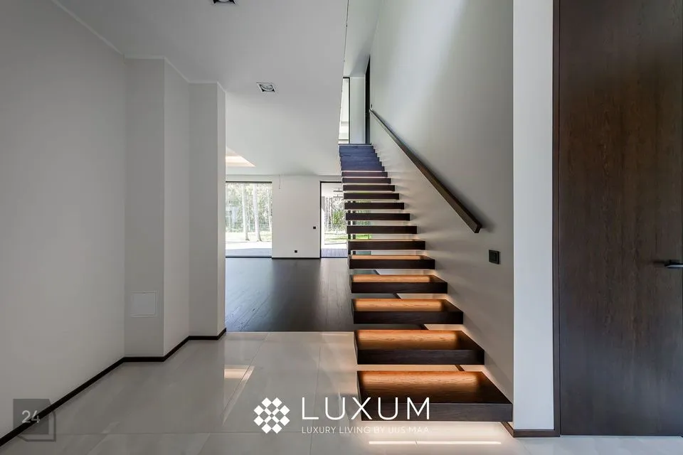 Esimesel korrusel on sisseehitatud BOSE kodukino süsteemi valmidus, nii elutuppa, kööki, sauna kui terrassile. Terrassile on paigaldatud hooldusvaba puitplast põrandakate ning jahedatel õhtutel annab soojust välisoojuskiirgurid.