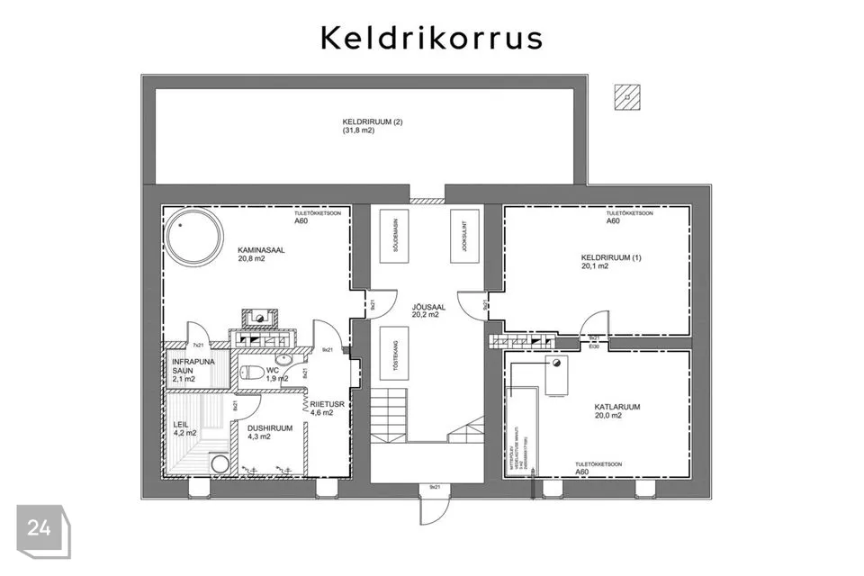 0-korrusel asetseb mullivanni ning kaminasaaliga saunakompleks, kus on olemas nii soome- ja infrapuna saun. Lisaks ruum asjade hoiustamiseks ja tehnoruum.