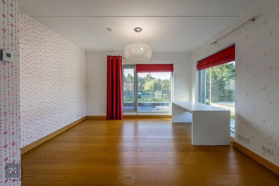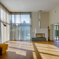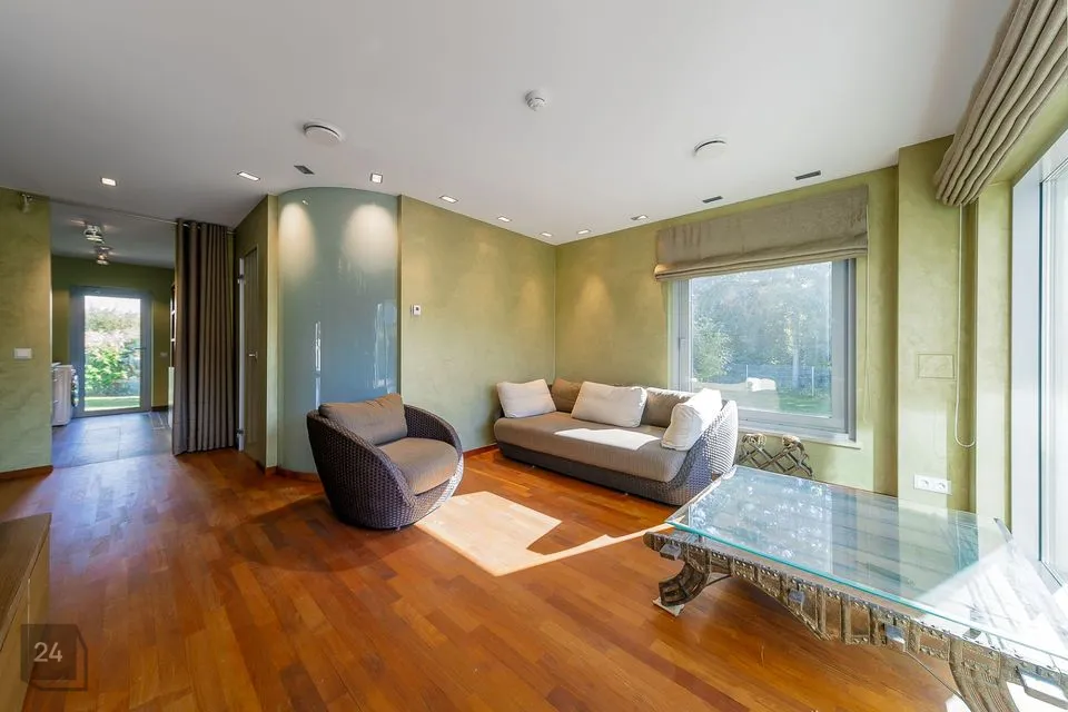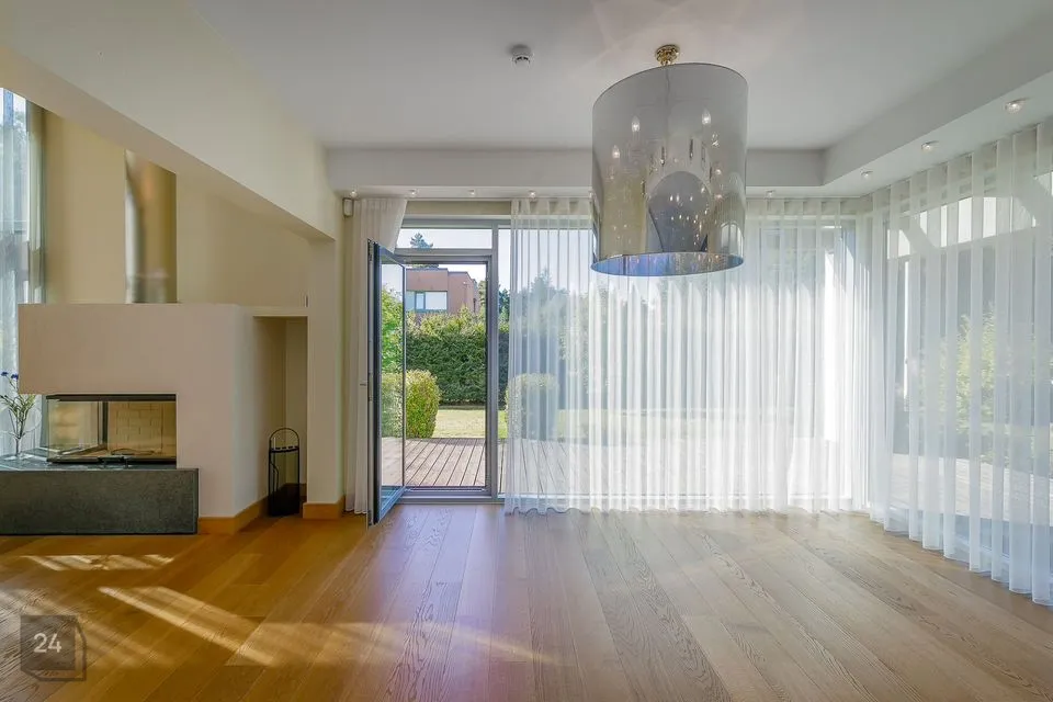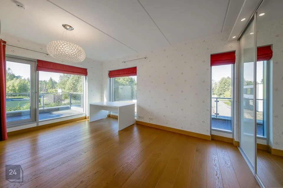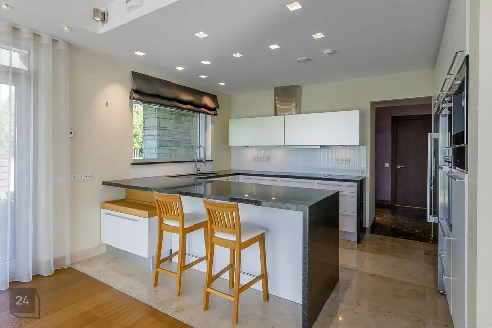 I tasapinnal on elutoast eraldi asetsev köök (Poggenpohl köögimööbliga), söögituba ja elutuba kaminaga.