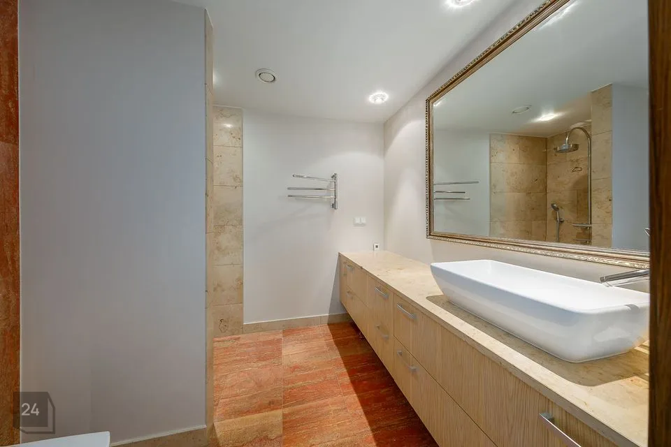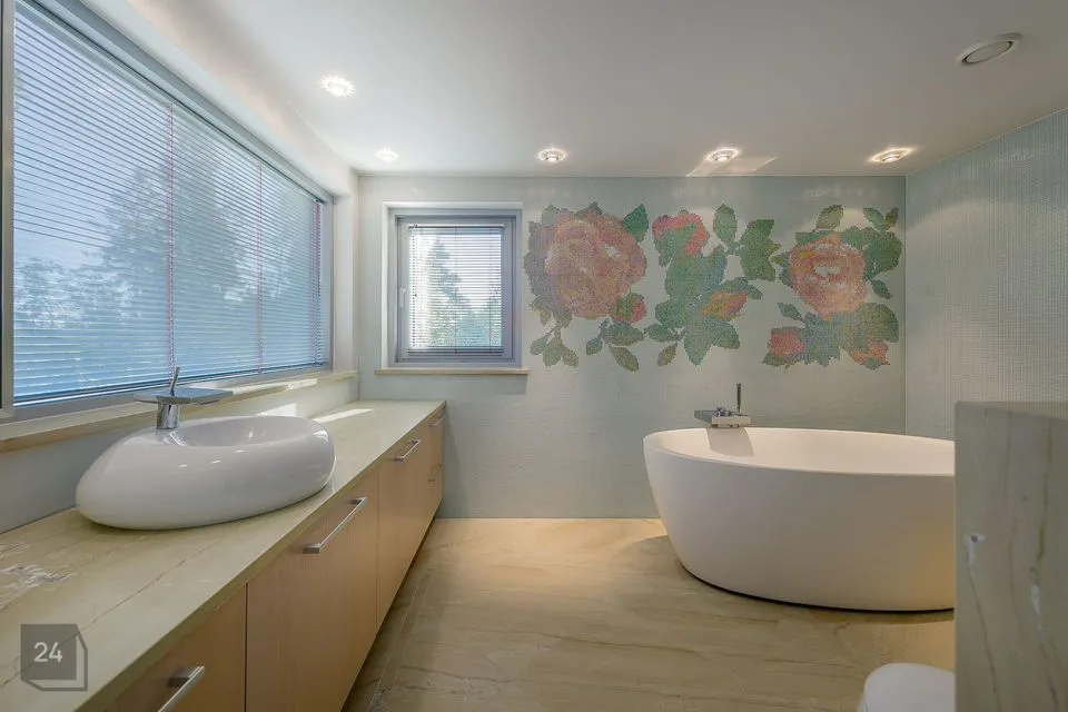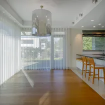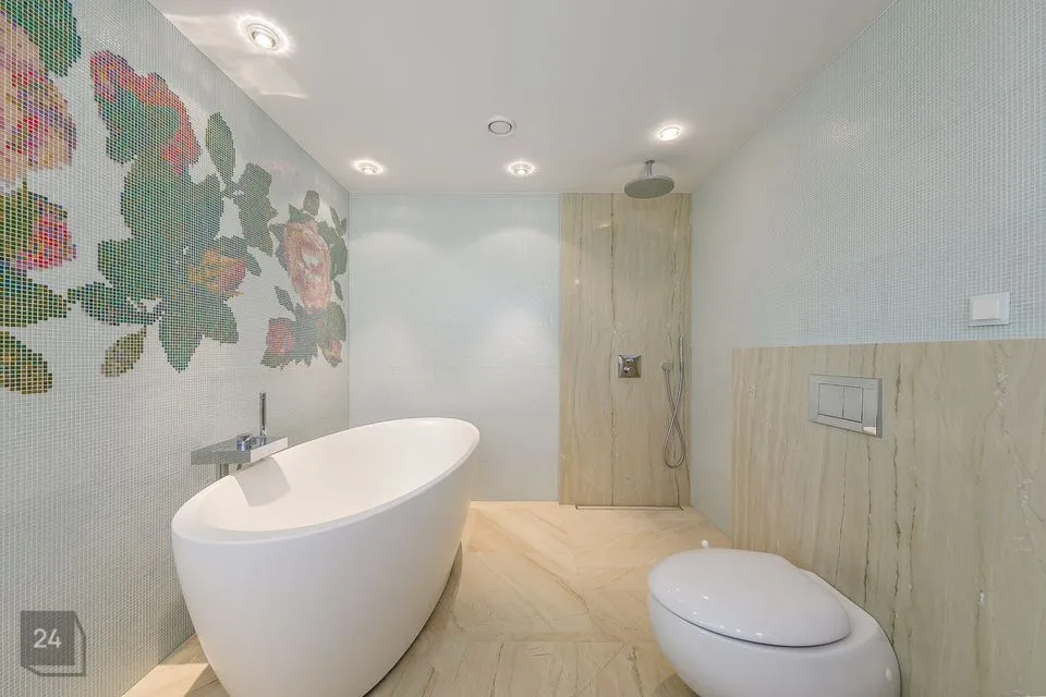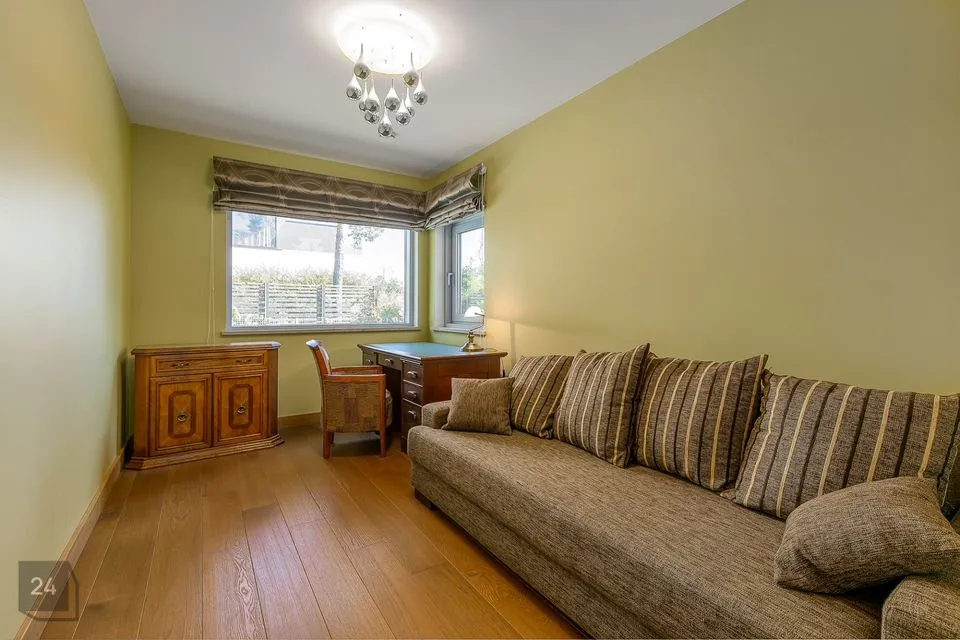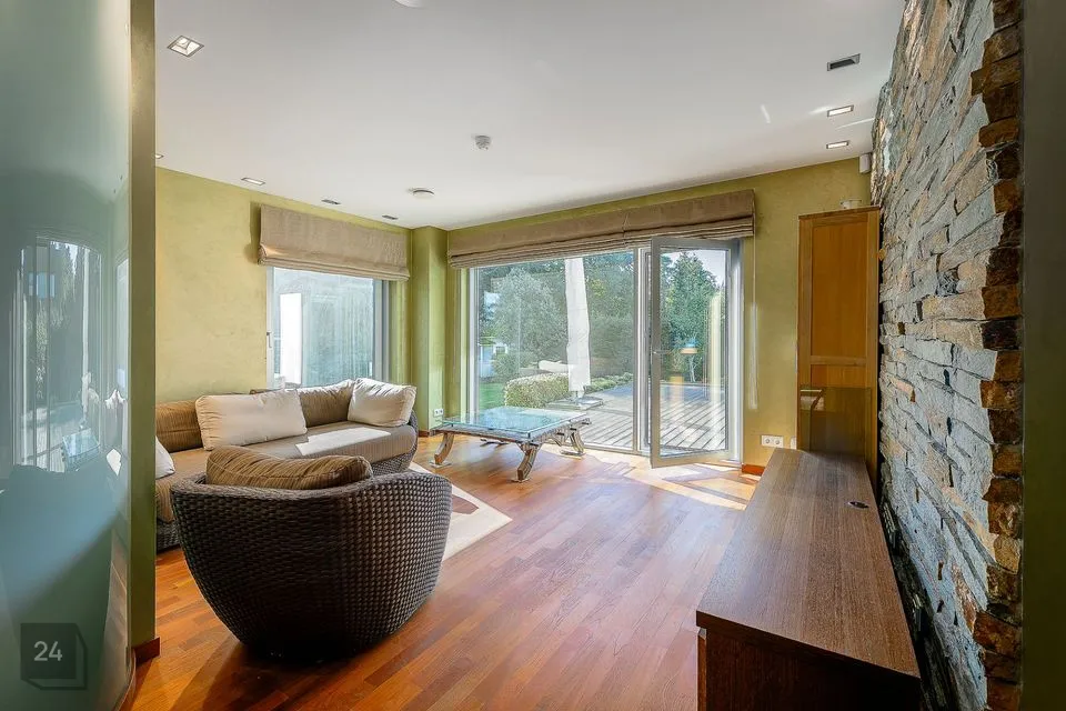 I tasapinnal on elutoast eraldi asetsev köök (Poggenpohl köögimööbliga), söögituba ja elutuba kaminaga.