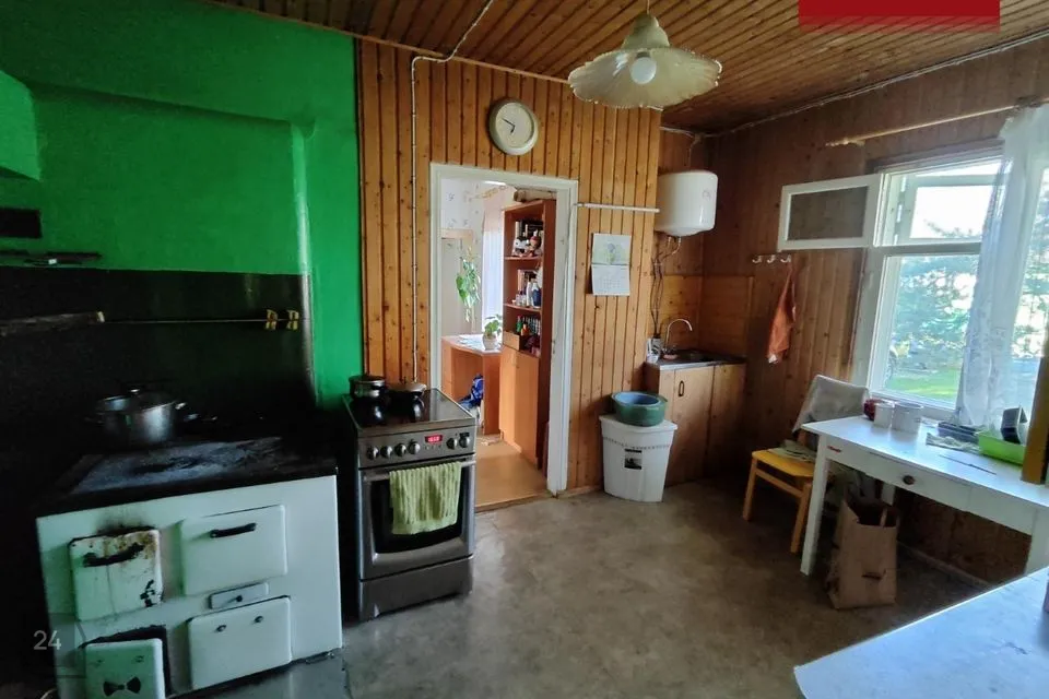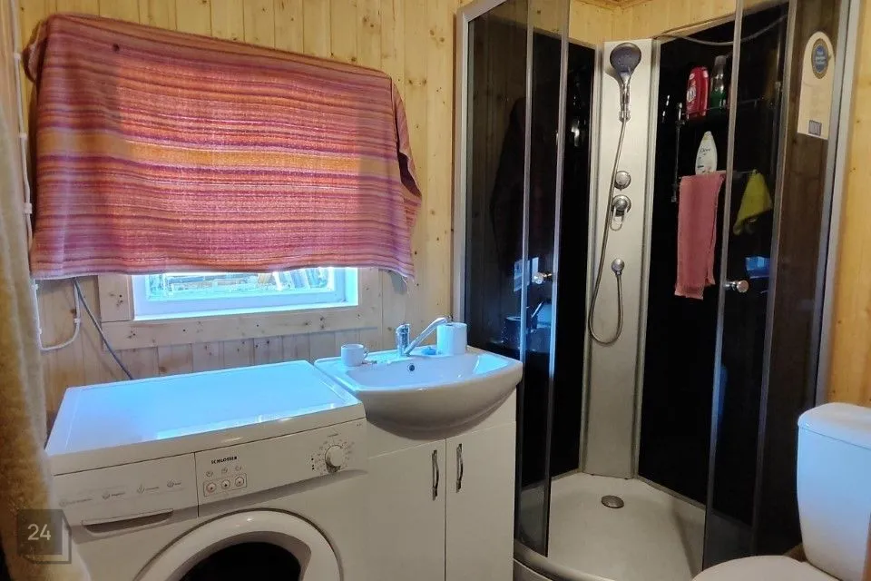 На первом этаже дома расположена кухня, три комнаты, прихожая, туалет/душевая комната и помещение для строительства сауны. Второй этаж на данный момент недостроен. Во всем доме установлены деревянные стеклопакеты.