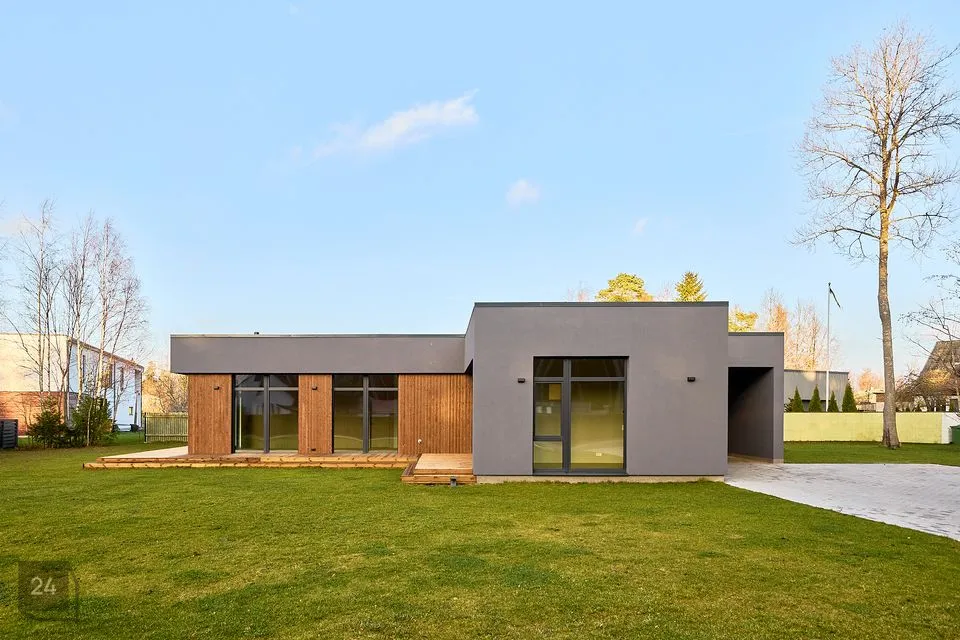 Fassaad on osaliselt krohvist, osaliselt puidust