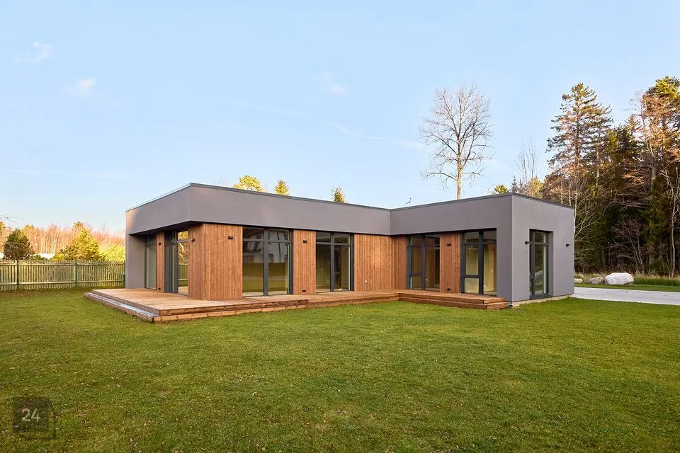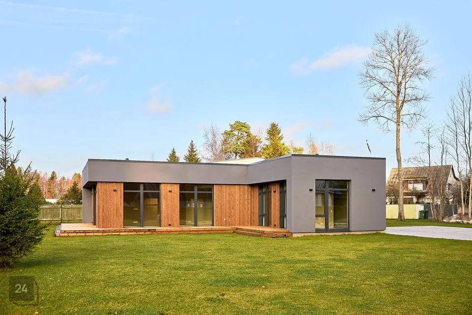 Fassaad on osaliselt krohvist, osaliselt puidust