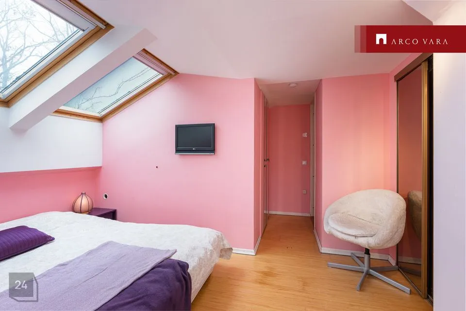Viimasel korrusel on magamistoa juures ka katusega rõdu. Toas on suur garderoobiala, voodi, mitmed kapid ja pimendavad kardinad.