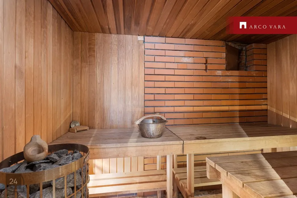 Liikudes esikust edasi jääb vasakule suure eesruumi ja ruumika dušinurgaga saun. Saunaruumi kõrval on üks maja kahest wc'st. Eesruumist pääseb ka terrassile ning sisehoovi. Privaatsel terrassil on piisavalt ruumi et perekonna või ka sõpradega koos ühiselt aega veeta.