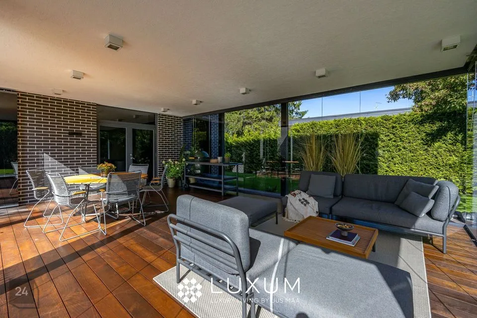 • Avar elutuba disainkamina ja pääsuga klaasitud terrassile