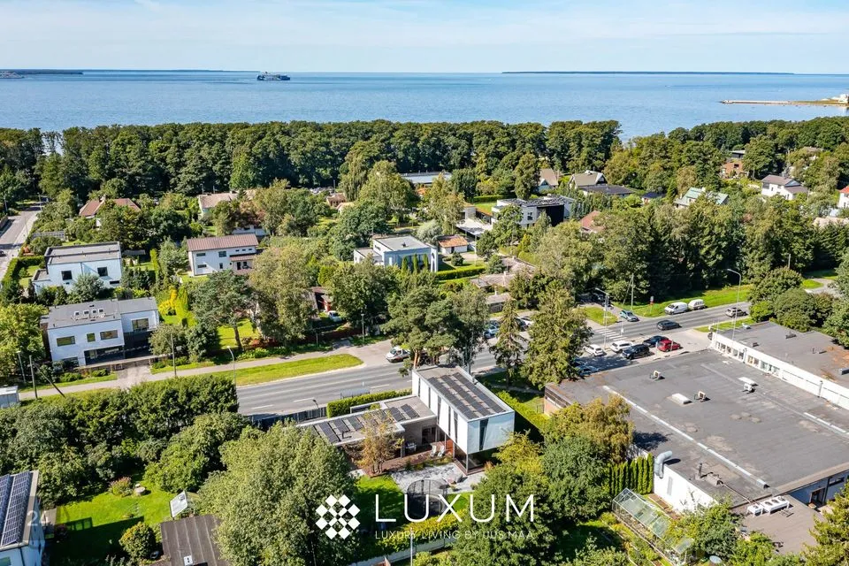 Maja arhitektuur on muljetavaldav – terava joone ja samas sooja materjalivalikuga hoone avab end loodusele, säilitades samal ajal täieliku privaatsuse. Klaaspinnad toovad tuppa valguse ja vaated, samas kui klaasitud terrass pikendab elutuba aastaringseks õuesolekuks. Aiakujundus on minimalistlik ja jälgib rannaläheduse temaatikat, ühendades kaasaegse joone rohelusega. Maja on projekteerinud tunnustatud arhitekt Sten Ader (SKAD arhitektid), kelle loomingusse kuuluvad mitmed auhinnatud eramud ja ühiskondlikud hooned.