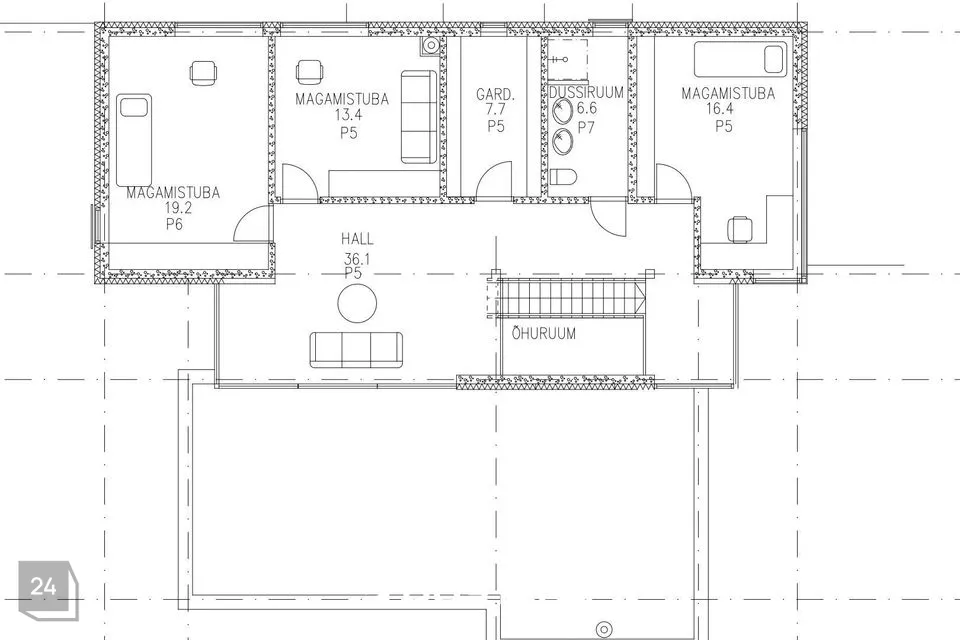 • 4 magamistuba, 2 vannituba-wc, millest üks vanni ja saunaga on põhimagamistoa kompleksis.