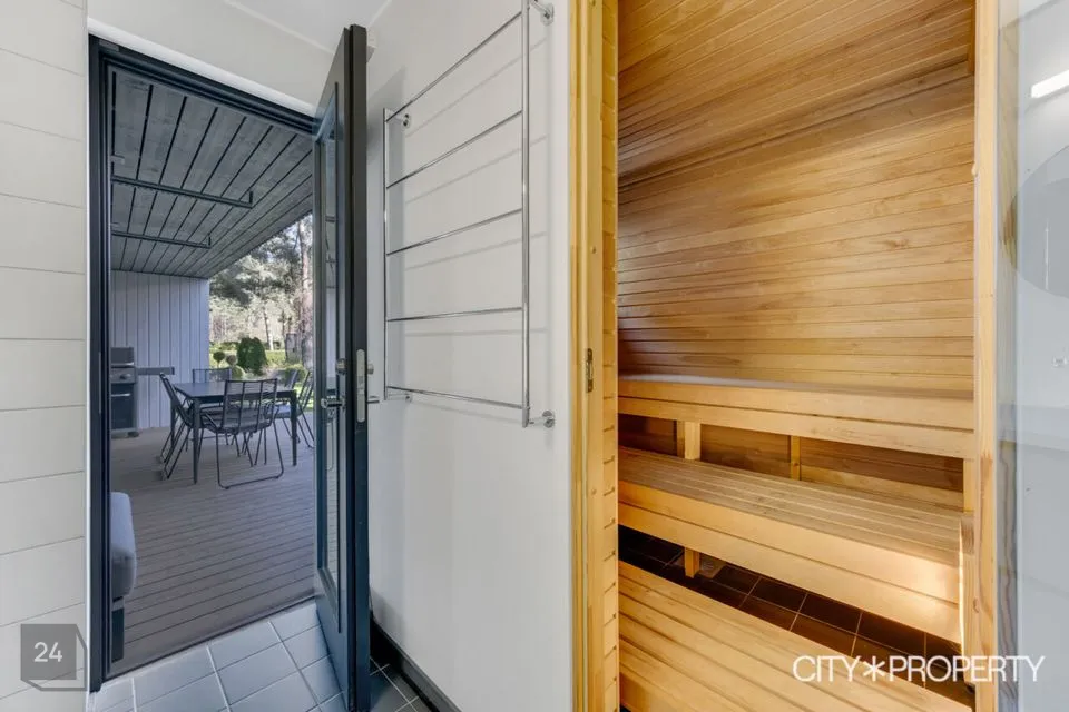Avatud planeeringuga elutuba ja köök, kolm magamistuba millest ühes on ka täisfunktsionaalne köök, mis võimaldab seda kasutada täiesti eraldiseisva eluruumina ja sobib ideaalselt erinevatele põlvkondadele ühe katuse all. Täiendavalt on hoones garderoob, kaks wc/vannituba, saun, esik, tehnoruum ja sahver. Maja juurde kuulub ka suur terrass, kus on mõnus perega suveõhtuid nautida.