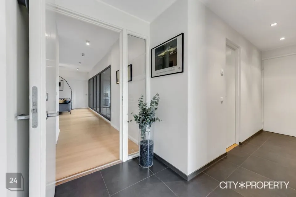Eramu seinad on viimistletud vertikaalse poolpunnlaudisega ja värvitud helehalliks. Aktsendiks on kasutatud tumehalliks värvitud horisontaalset trapetsikujulist sõrestikprofiili.