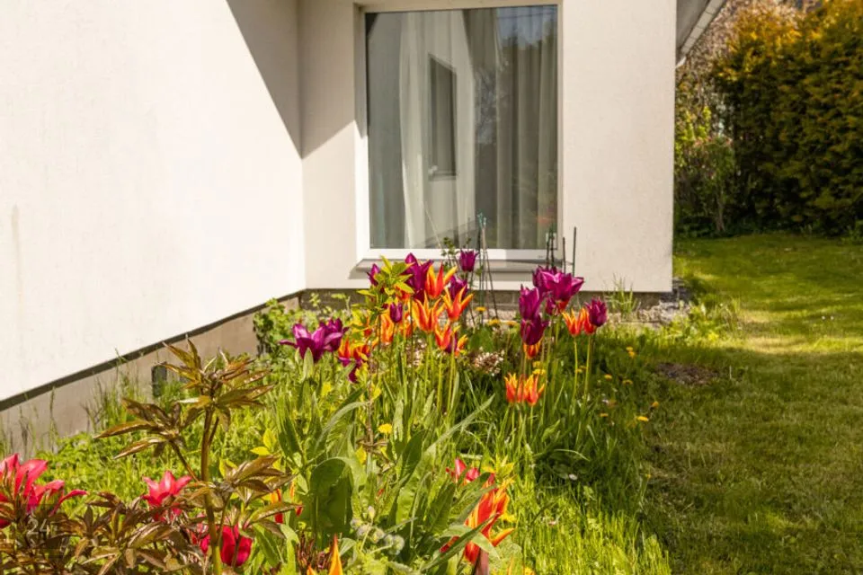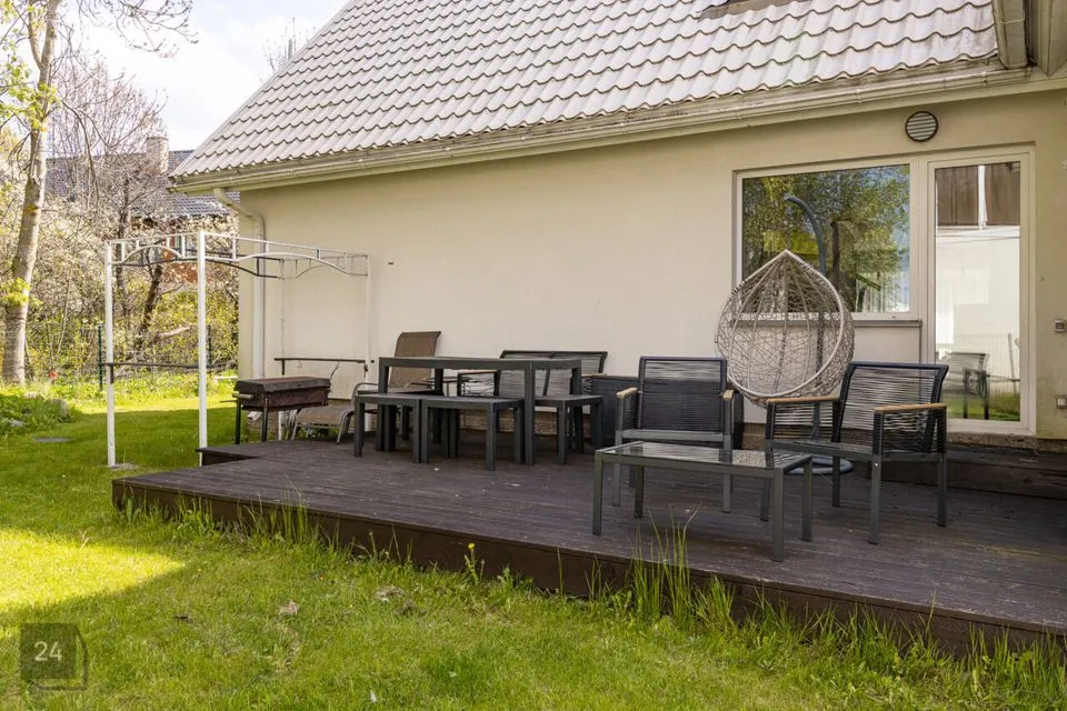 Piirdeaiaga ümbritsetud hooldatud hoov, kus kevadeti õitsevad imelised tulbid. Hoovis asub abiruumihoone, samuti kasvuhoone, kus saad kasvatada enda istutatud vilju. Elutoast pääseb otse terrassile, kus aeg justkui peatub ja suvi kestab.