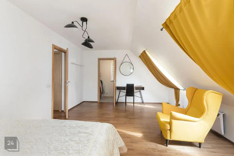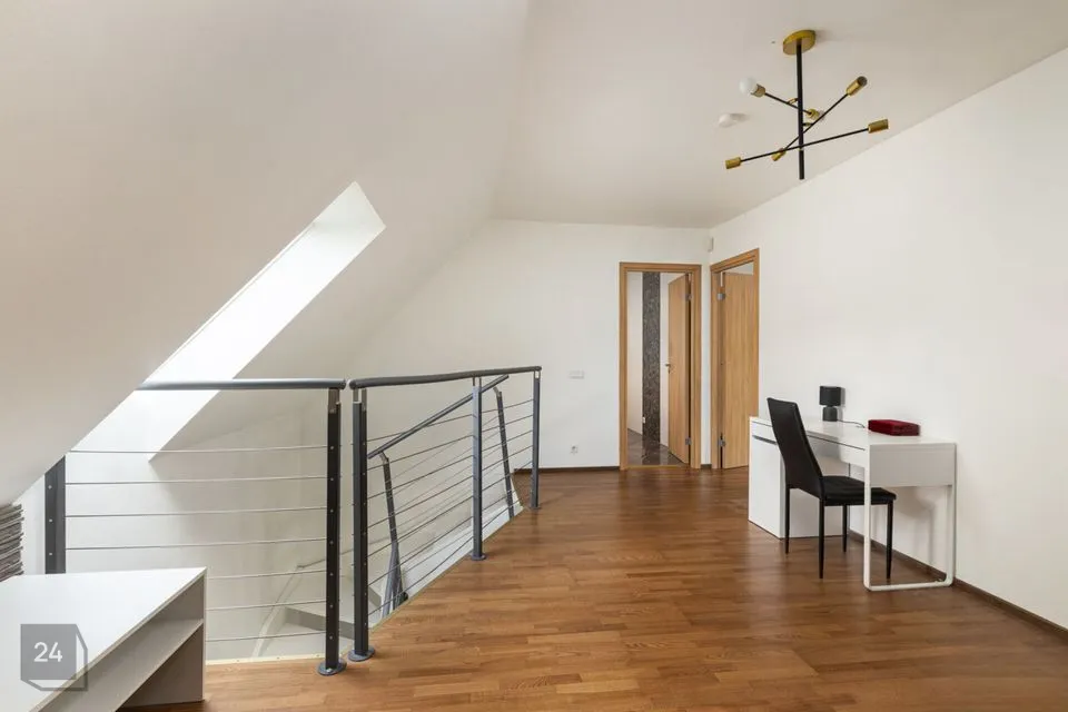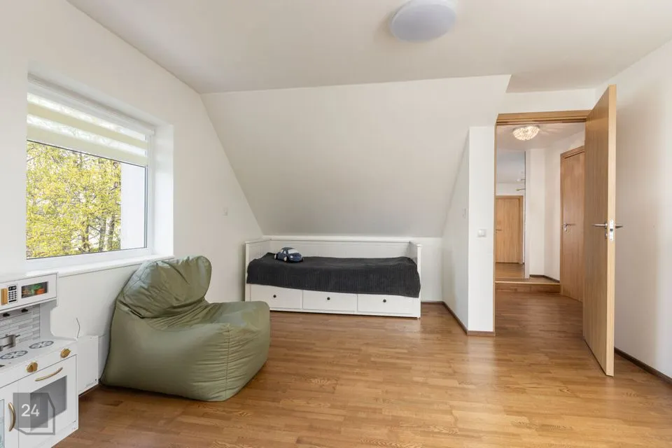 Teisele korrusele viib õhuline ja stiilne trepp. Trepihalli saab kujundada kodukontoriks, lugemisnurgaks või jõusaaliks – võimalusi on palju. Ülemisel korrusel on kolm magamistuba, neist üks master-bedroom rõdu ja walk-in garderoobiga. Lisaks on suur vannituba, ühine garderoob ning rohkelt panipaiku, mis aitavad hoida elu korras ja organiseeritud.