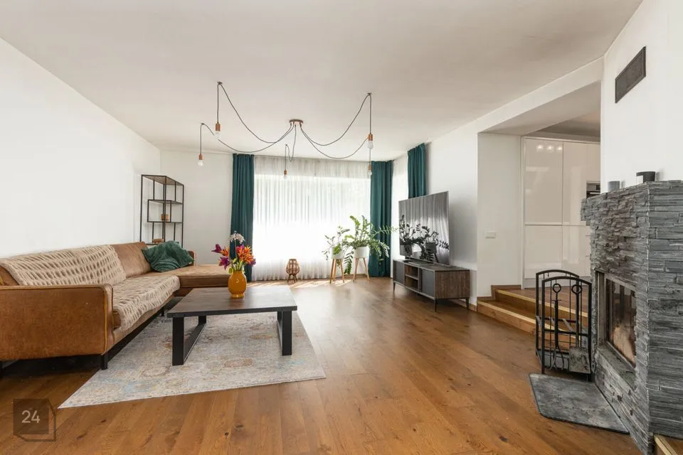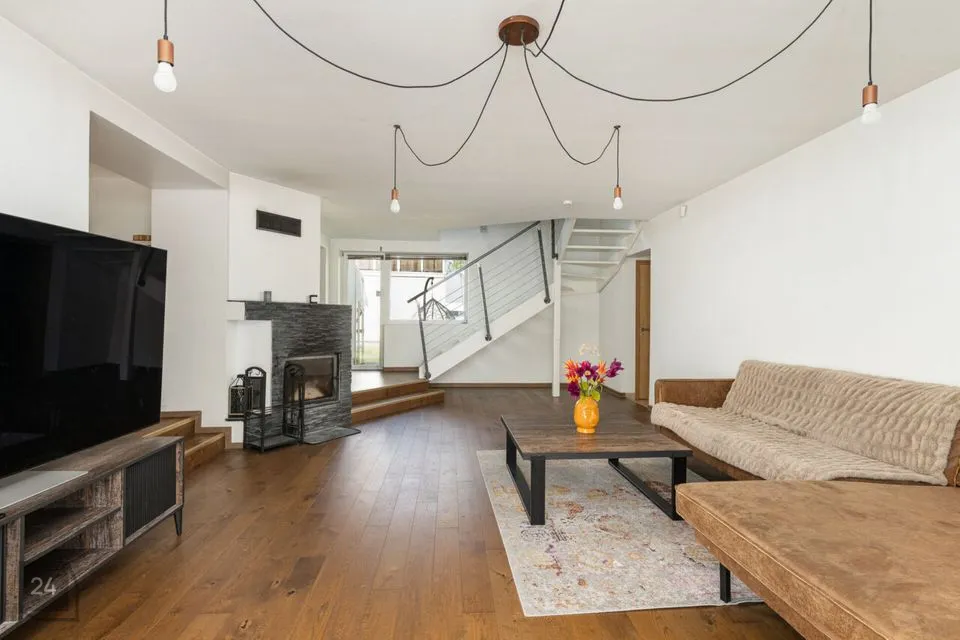 Esimesel korrusel tervitab sind suur esik, söögituba, köök ning valgusküllane elutuba maast laeni akendega, kust pääseb otse õhtupäikesega terrassile – ideaalne paik suveõhtuteks, grillideks ja hetkedeks koos pere või sõpradega. Elutoas asuv kamin soojendab ka müüri, mis jagab soojust kogu alumisele korrusele – hubasus ja praktilisus ühes.
