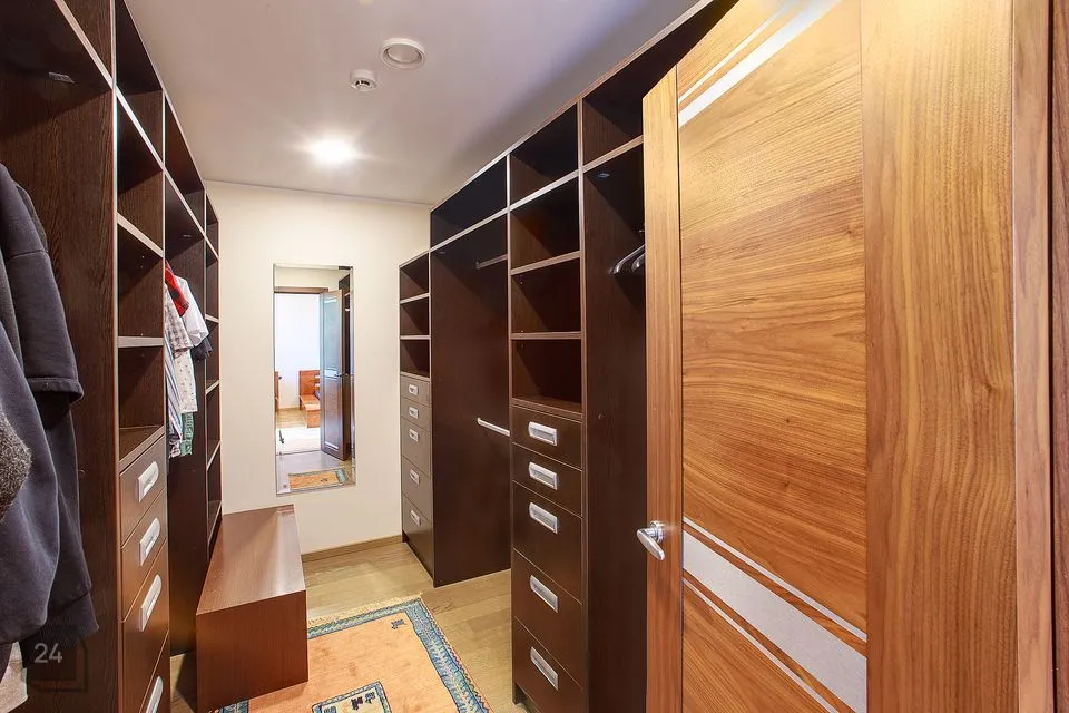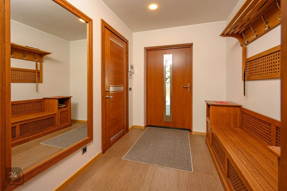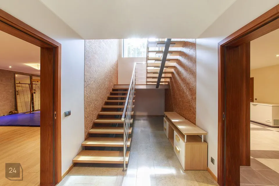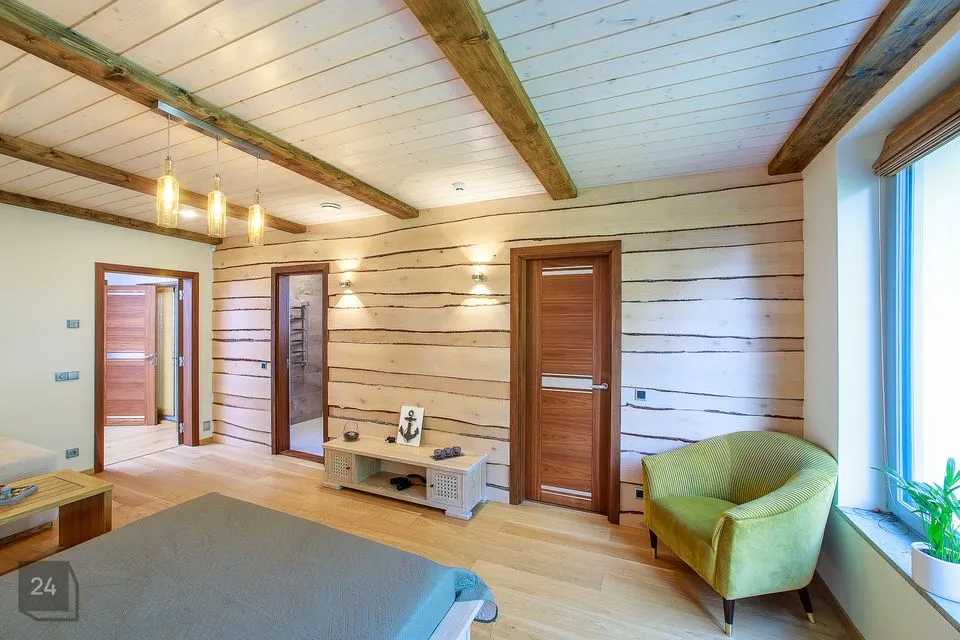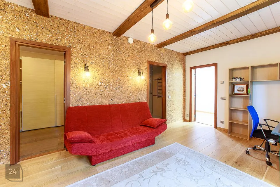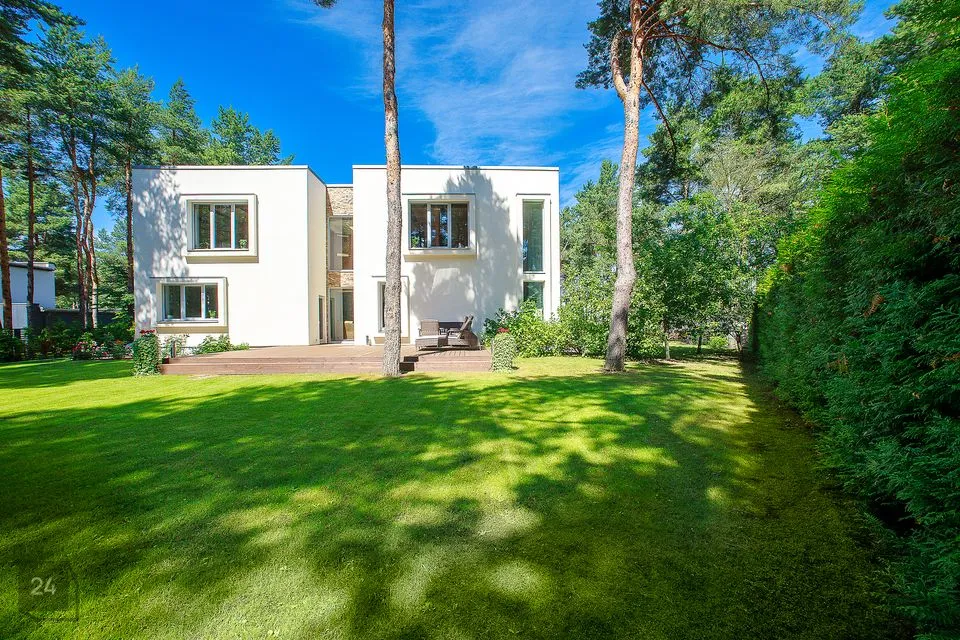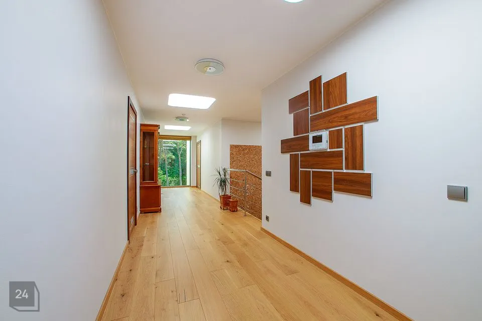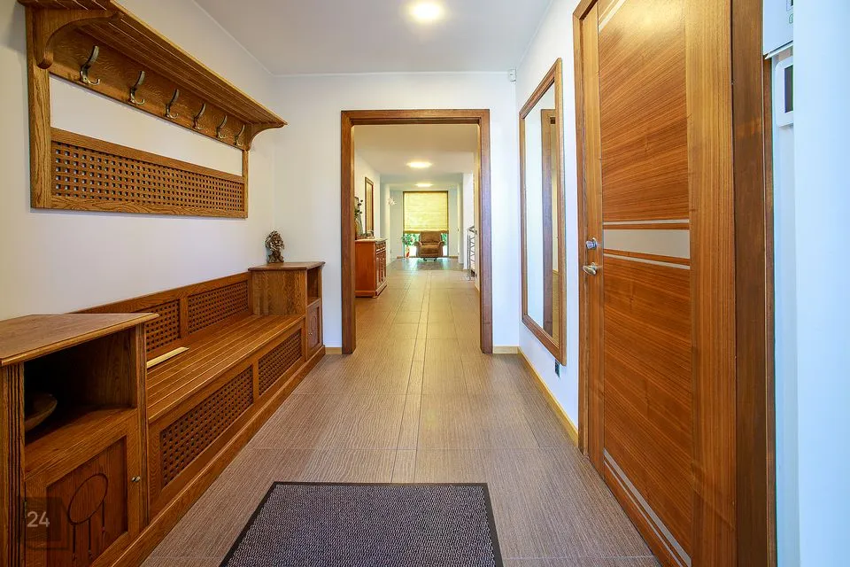 Kogu maja mööbel, kaasaarvatud vannitubades, on valminud eritellimusena ning on saarest või tammest. Maja siseuksed on pähklispooniga. 2. korruse põrandatel on tamme täispuitparkett, 1. korrus on keraamilise põrandakattega.
