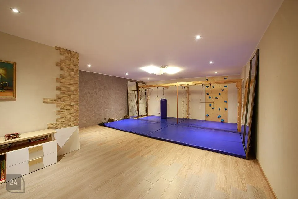 0 korrusel asub suur spordisaal, küttesõlm, ventilatsiooni- ja kesktolmuimeja ruum, elektrikilbiruum ja suur panipaik.