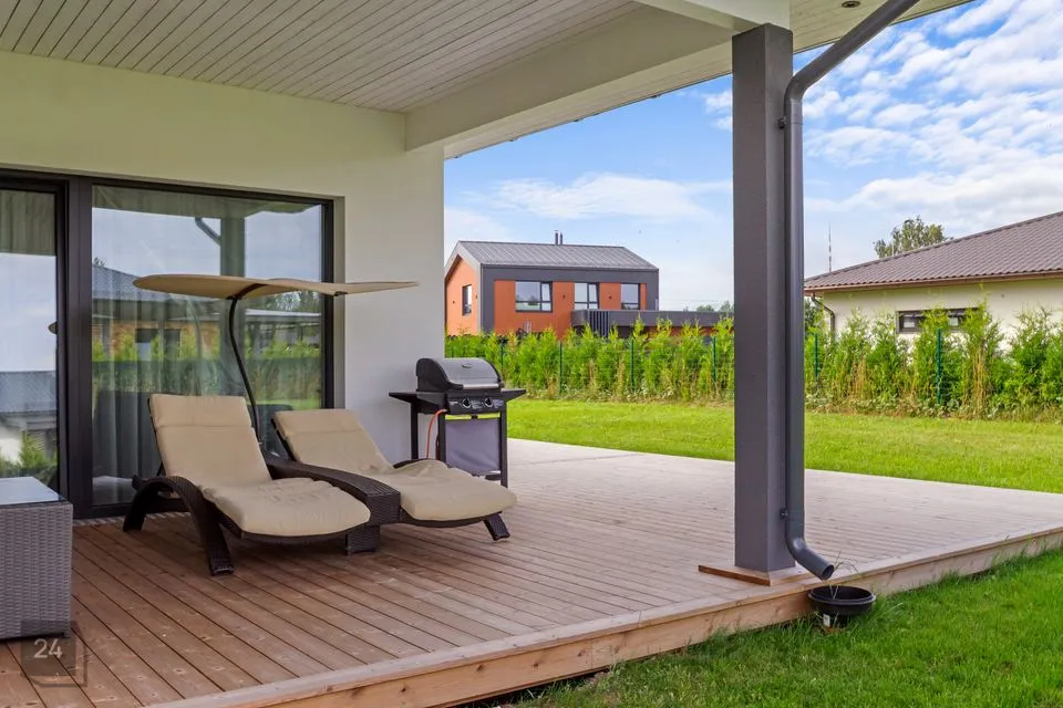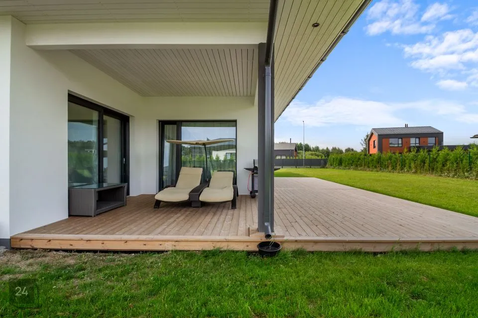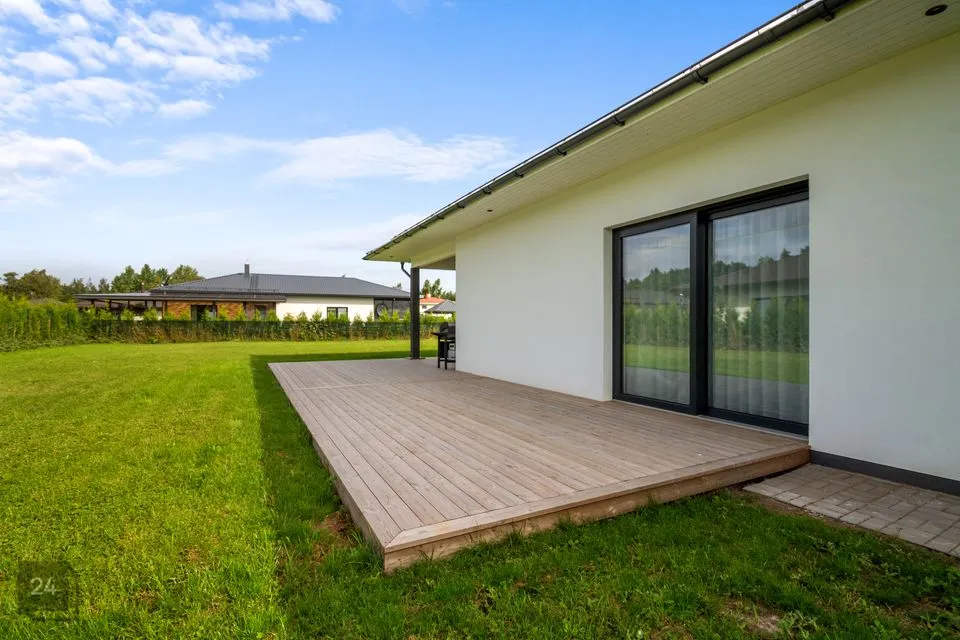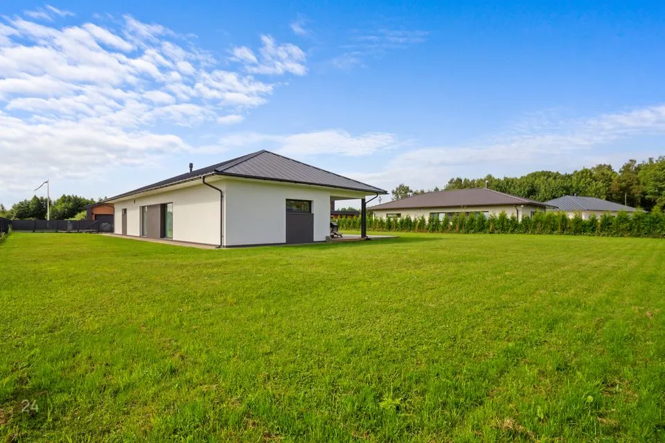 Kõik eluks vajalik on ühel tasapinnal – ei mingeid läbikäidavaid tube! Avar ja valgusküllane planeering, maast laeni aknad nelja ilmakaarde, eraldi saun, vannituba koos wc-ga, 2 wc-d ning garaaž, kuhu pääseb otse majast. Maja on praktiliselt uus, mis annab Sulle võimaluse olla oma kodu sisekujundaja – paigutada mööblit ja valida toad pere liikmete soovide järgi.