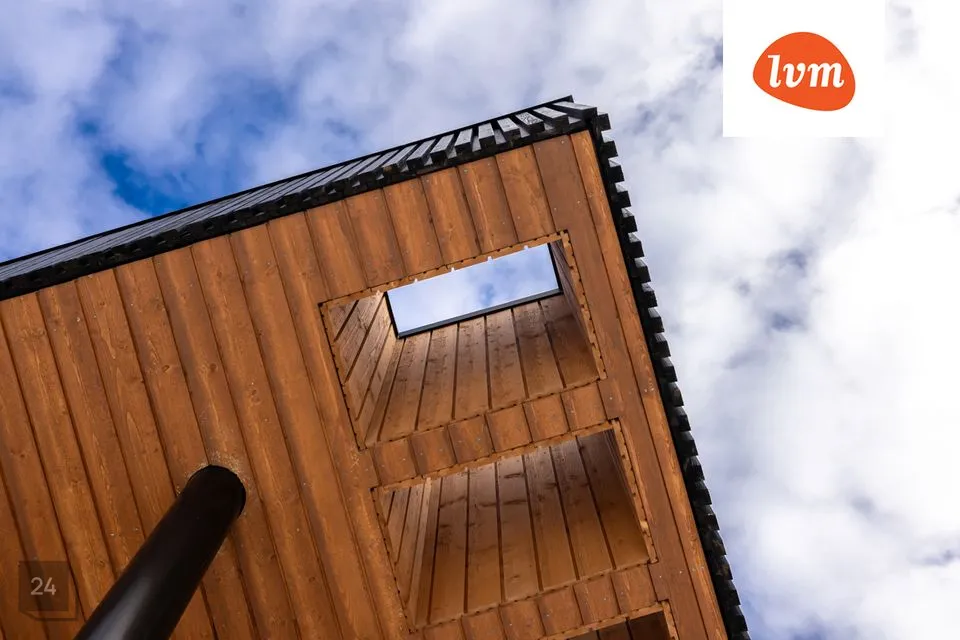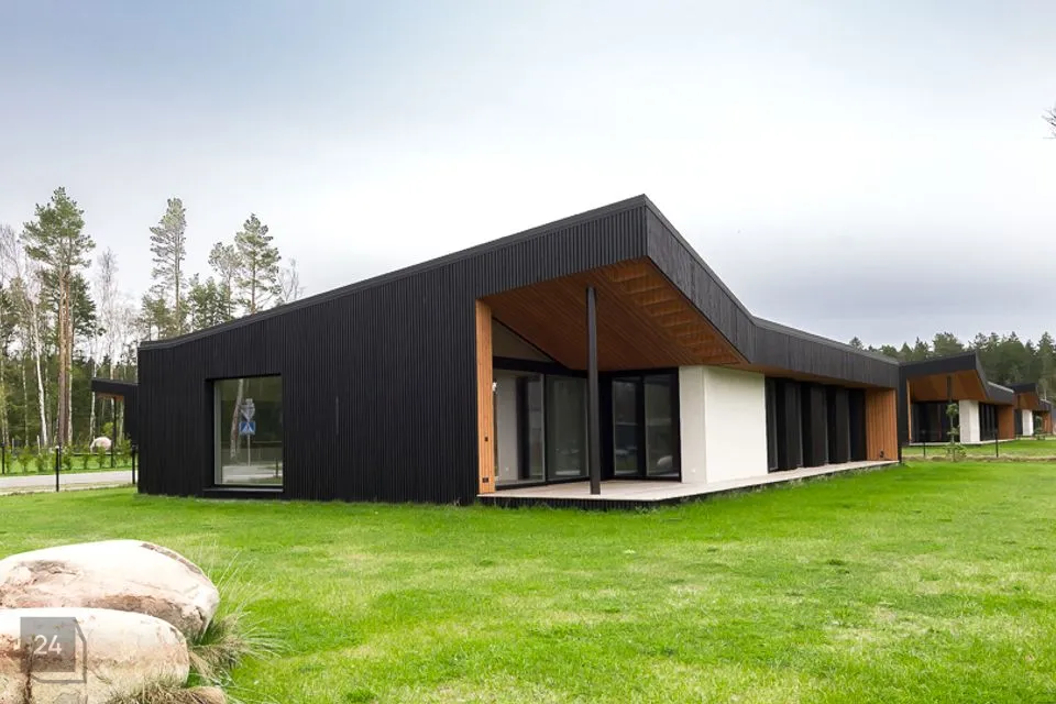 Välisseina viimistlusmaterjaliks on tsementplaat+ puitlaudis.