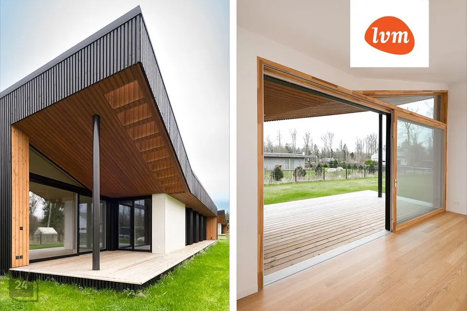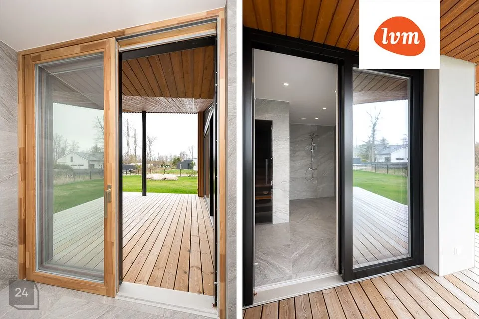 Majal on kvaliteetsed kolmekordsed puitalumiiniumaknad.