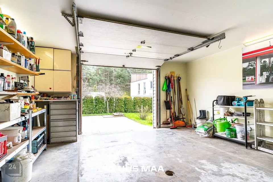 Elamuga on ühendatud kaks garaaži, millest üks viib otse keldrikorrusele. Keldris leidub tööruum, hoidiste hoiustamiseks sobiv ala ning hulgaliselt kasutamata pinda. See on koht, kus realiseerida oma hobi, pidada töökoda või lihtsalt hoida asju turvaliselt ja organiseeritult. Keldrit on võimalik koduseks stuudioks. Teine garaaž on soovi korral liidetav eluruumiga – näiteks eraldi sissepääsuga kodukontoriks. Lisaväärtusena on olemas ka ~20 m² suurune garaažipealne panipaik, millel on eraldi sissepääs. See on praktiline ruum näiteks talveriiete, sporditarvete ja muude hooajaliste asjade hoiustamiseks.
