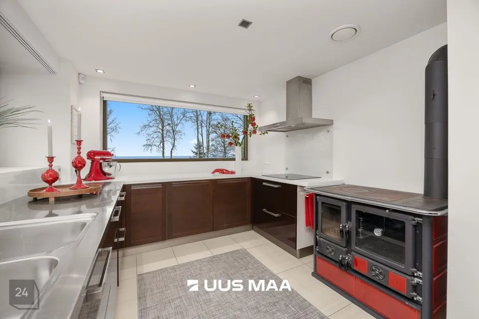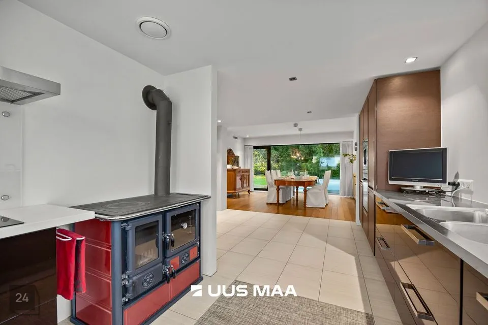 Samal tasapinnal asub ka kvaliteetse tehnikaga köök, mille puuküttepliit lisab majale mõnusat kodusoojust.