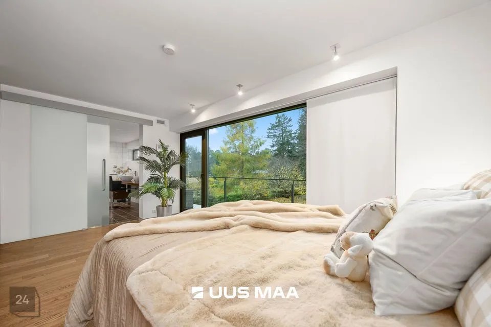 Teisel korrusel asuvad kolm magamistuba, millest peamine on kui privaatne luksussviit — eraldi vannituba, garderoob ja oma terrass. Kontoriruumi asemel on võimalik tekitada ka neljas magamistuba.