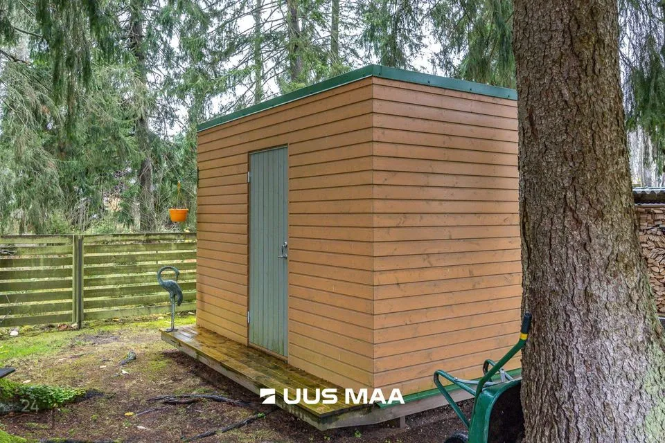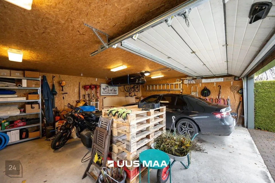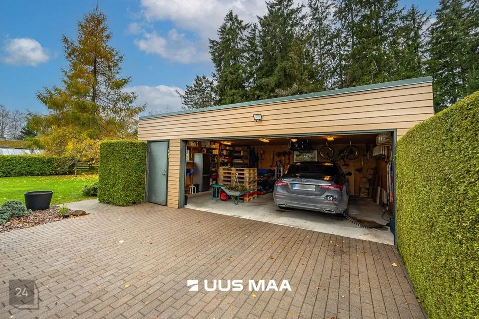 Kinnistul paikneb ka kahe autoga garaaž (47,1 m²), mille kõrvalruumid sobivad suurepäraselt aiatööriistade, varustuse või hobide tarbeks. Garaažil on elektrilised väravad, mis lisavad mugavust igapäevastele sõitudele.