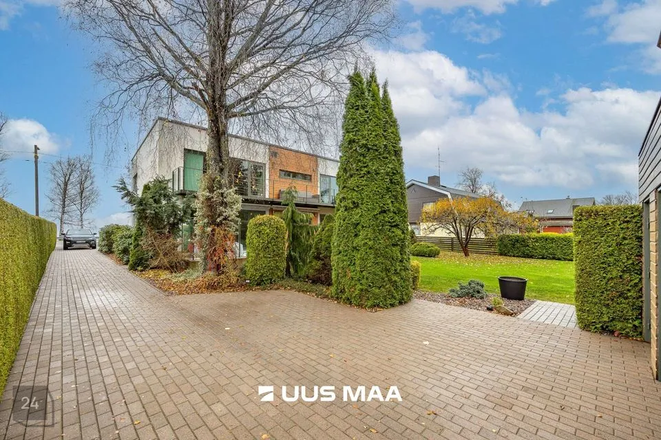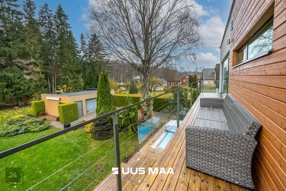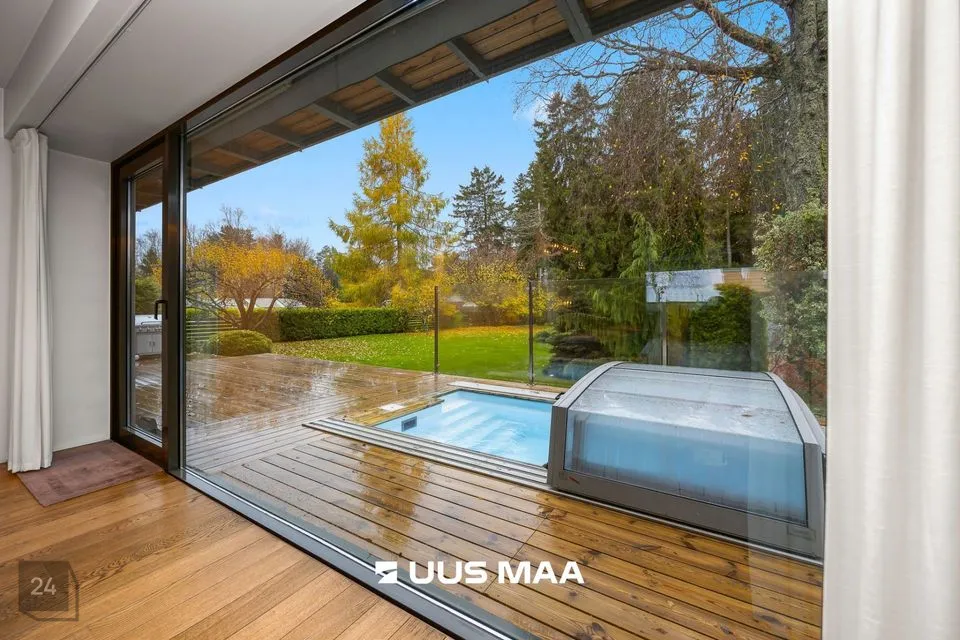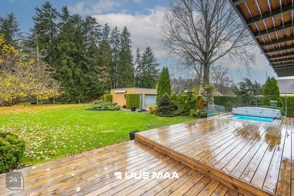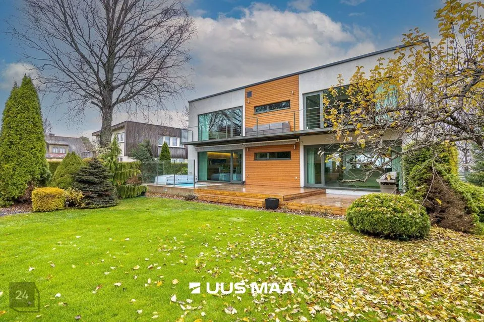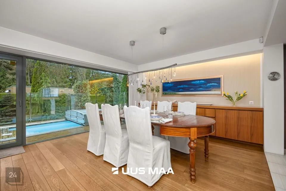 Katusele paigaldatud 11 kW päikesepaneelid toodavad energiat nii majale, basseinile kui ka elektriauto laadimisele, tagades madalad kõrvalkulud ja säästliku igapäevaelu.